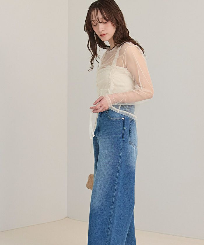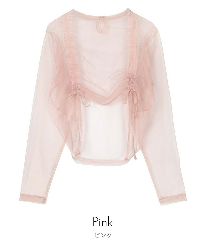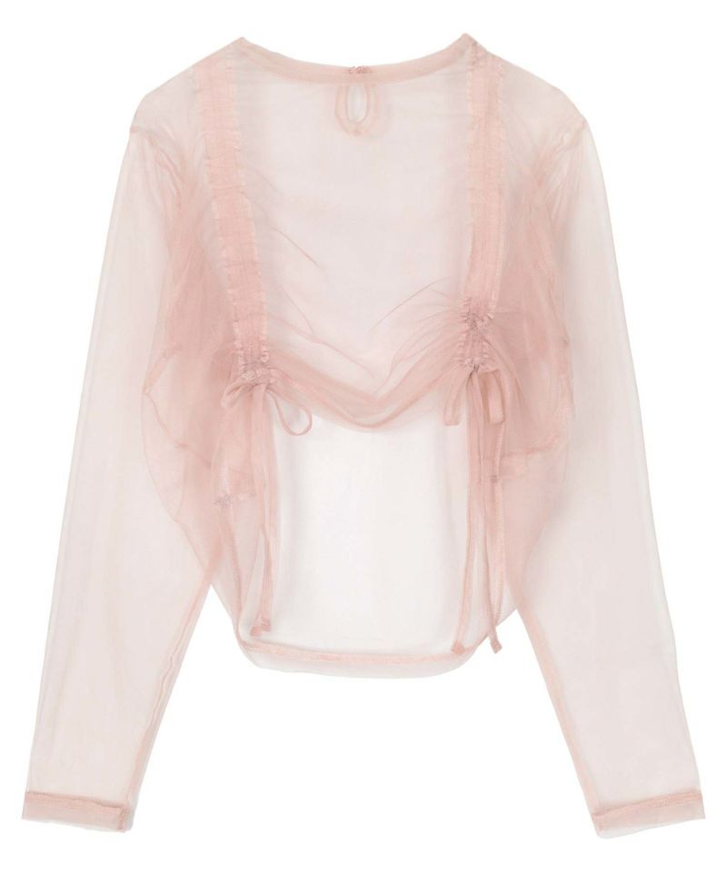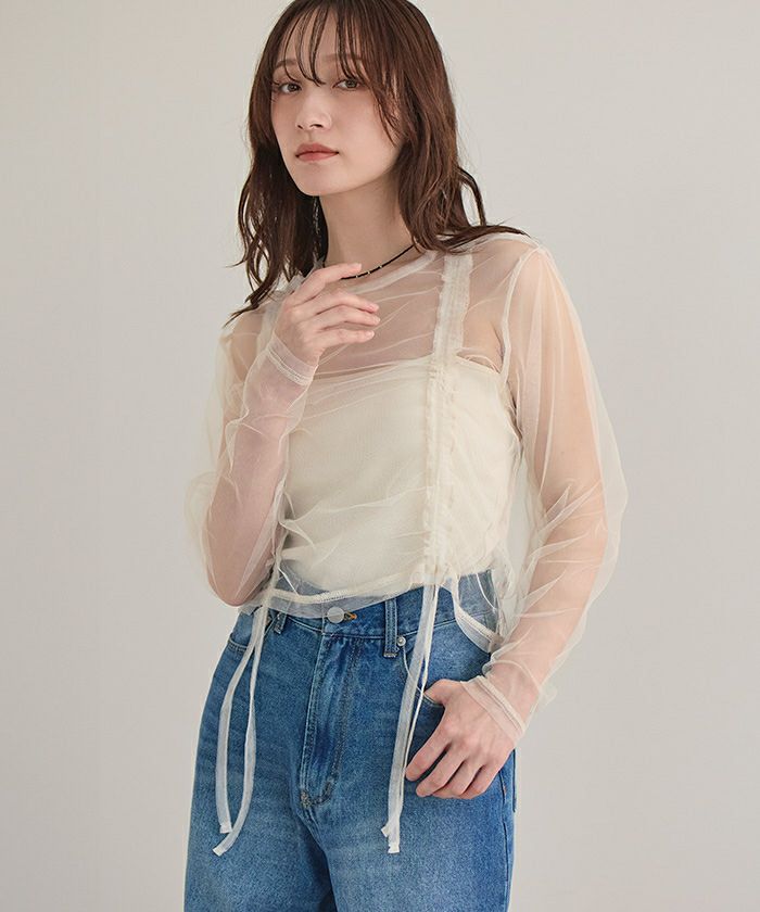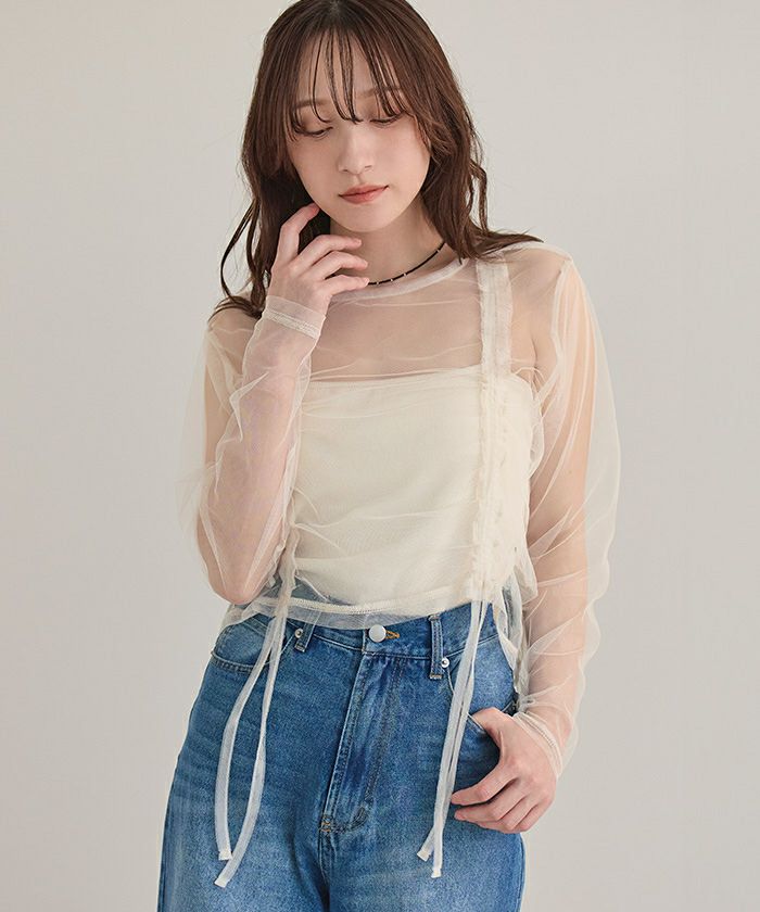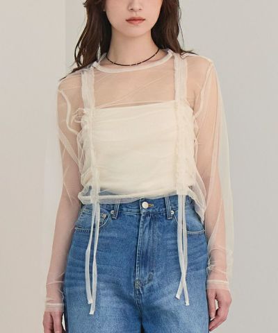 チュールフロントシャーリングトップス【miette ミエット】【メール便可/50】