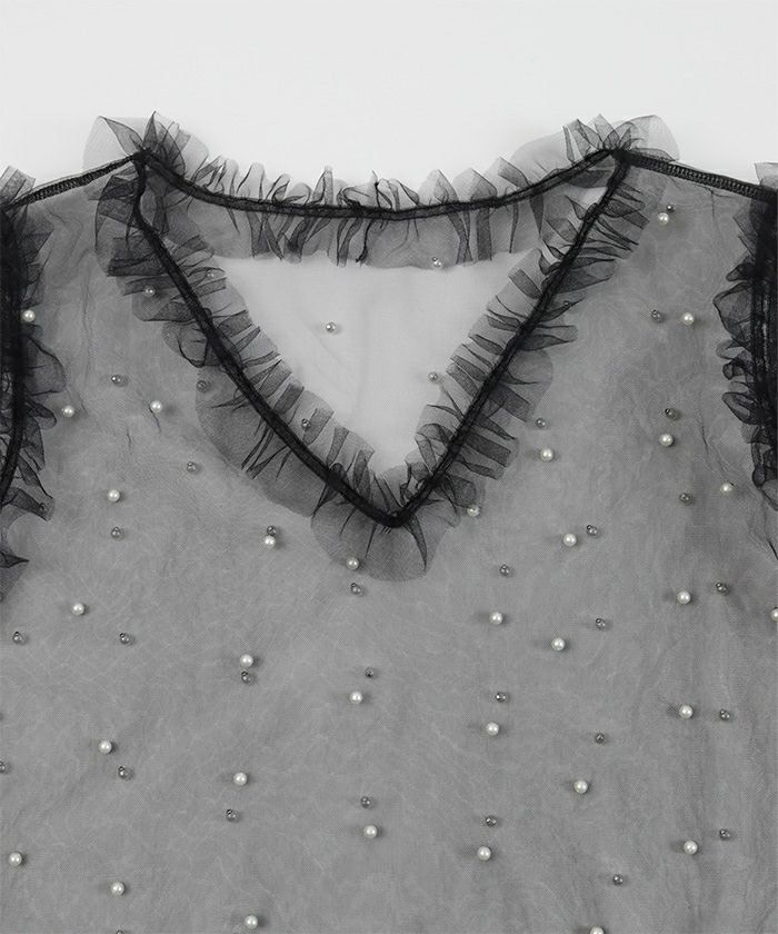 ・全体にパールを施したチュールトップス。
