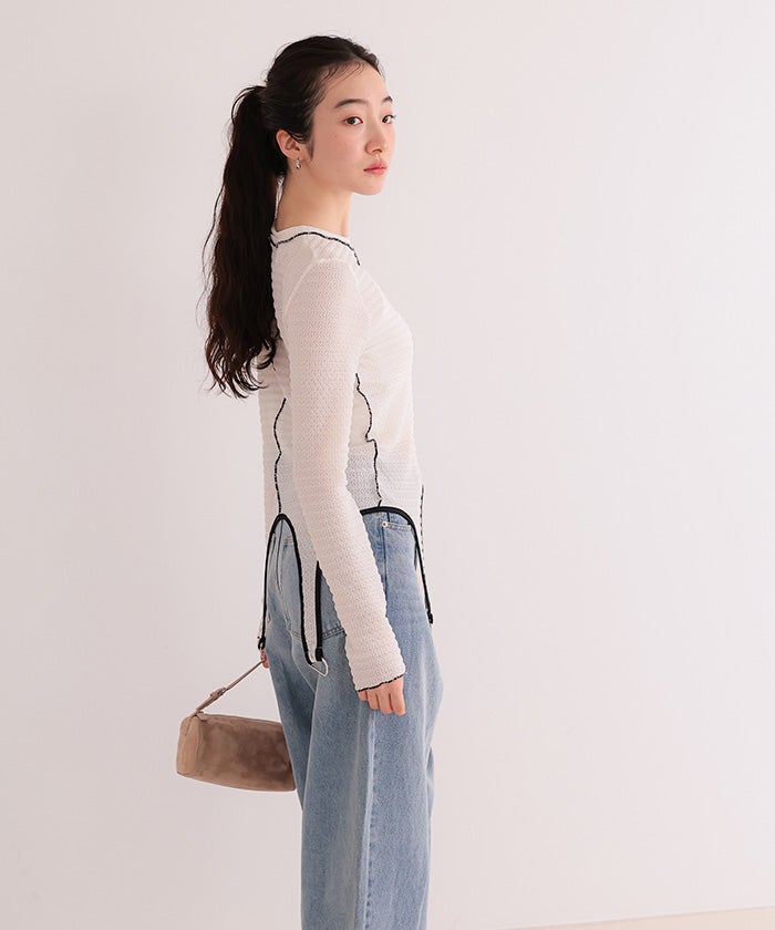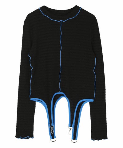 ・ガーターベルトデザインがポイントのカットソートップス。