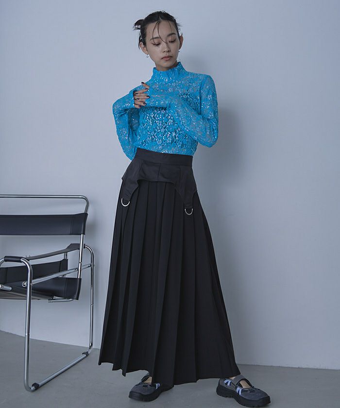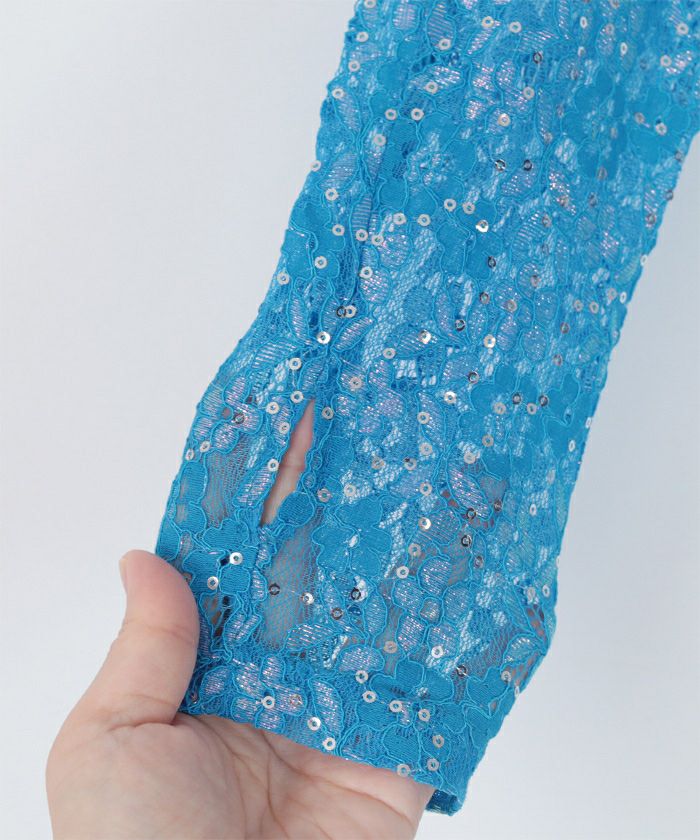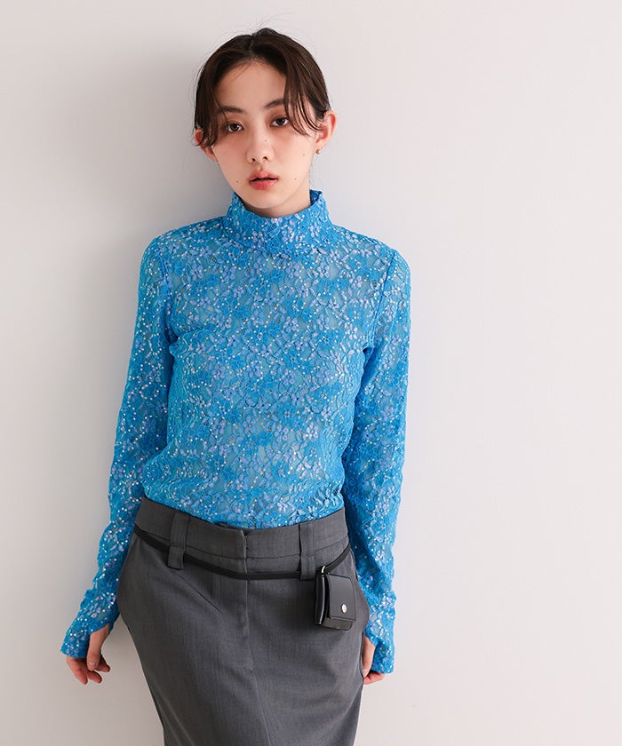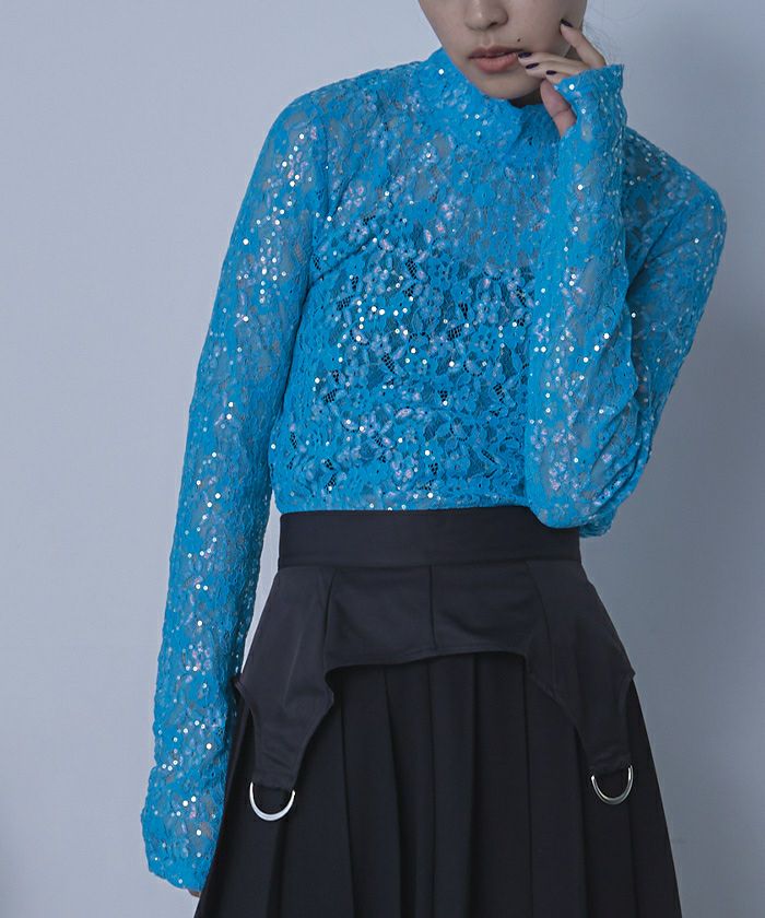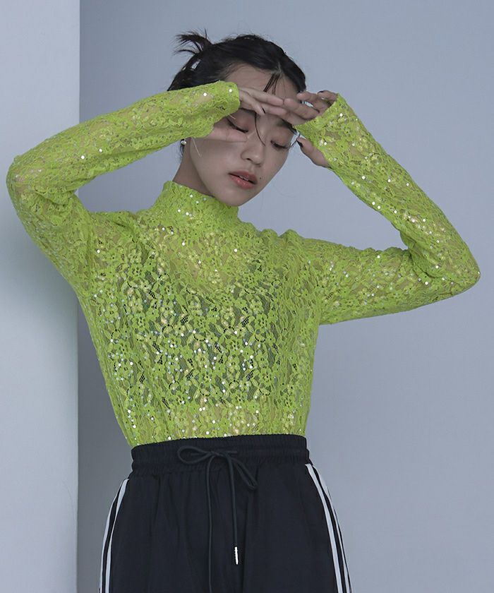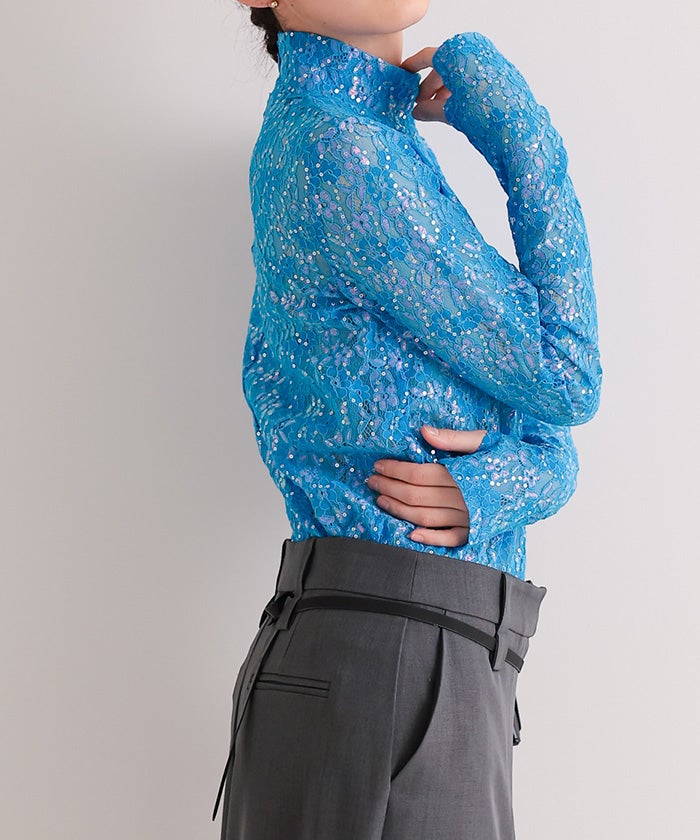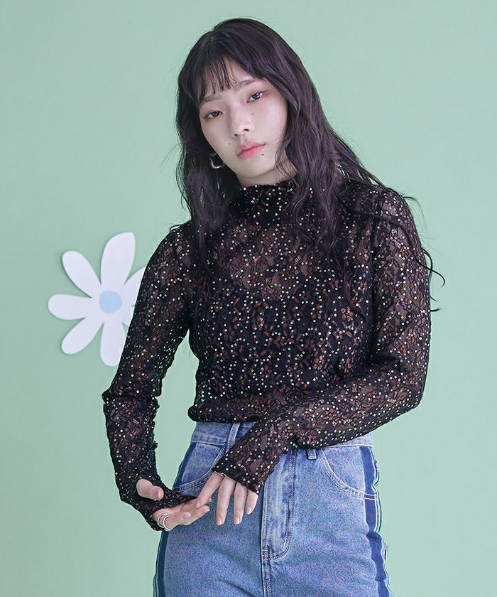 スパンコールレースハイネックトップス【miette ミエット】【メール便可/100】