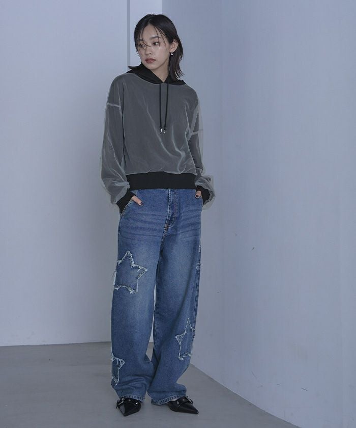 この製品は素材の特性上引っ掛けが生じやすい面があります。表面の粗い物に擦ったり、バッグやベルト、先の鋭い物にひっかけますとささくれや糸が浮き易く、切れる事もあります。着用、着脱の際はベルト、バッグ、アクセサリー等の金具や突起物にご注意下さい。