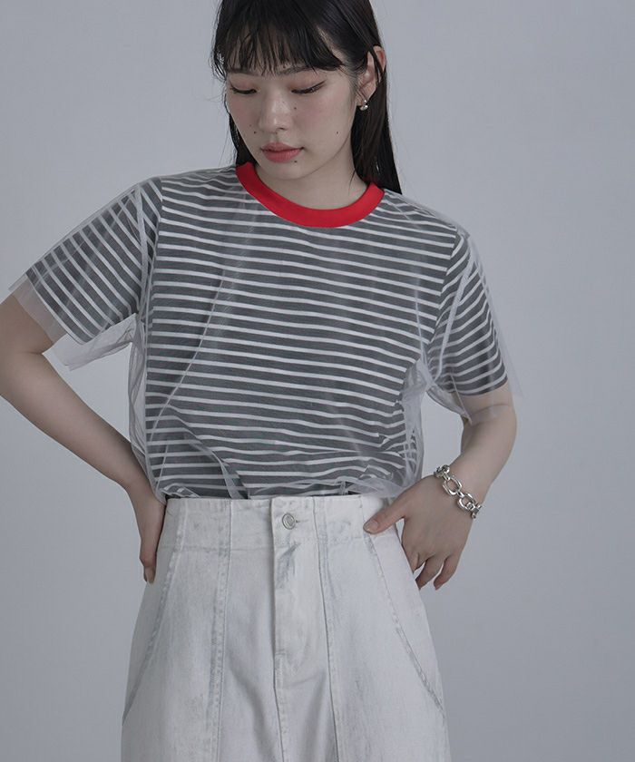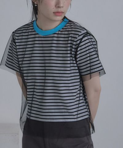 チュールレイヤードボーダーTシャツ【miette ミエット】【メール便可/80】