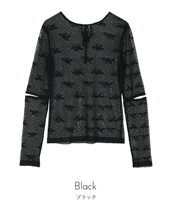 ・トレンドのリボン柄のチュール生地を使ったトップス。