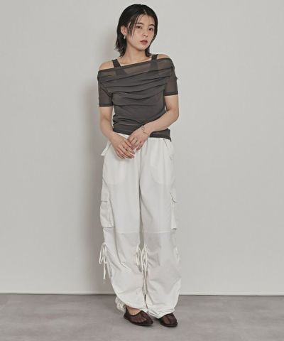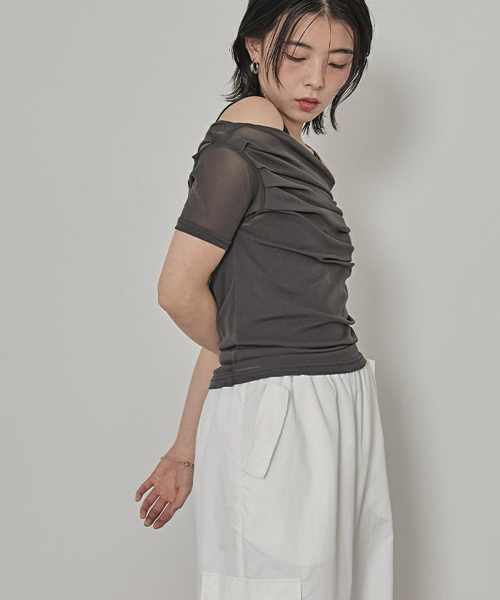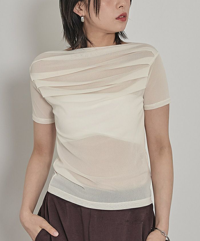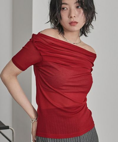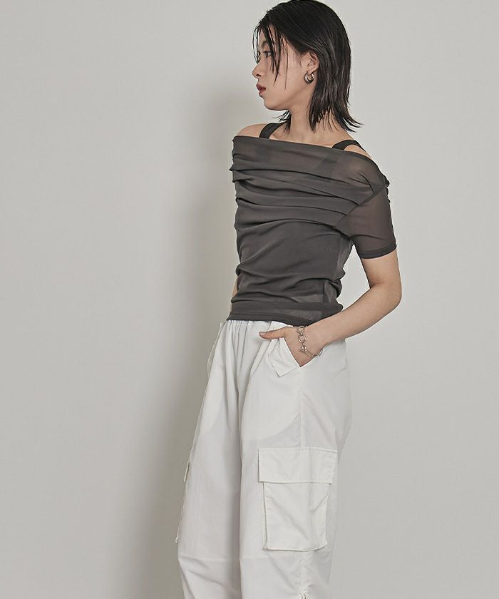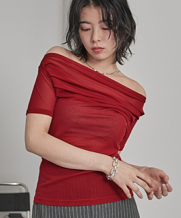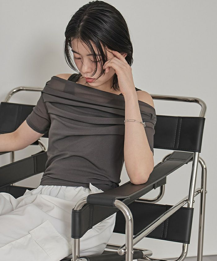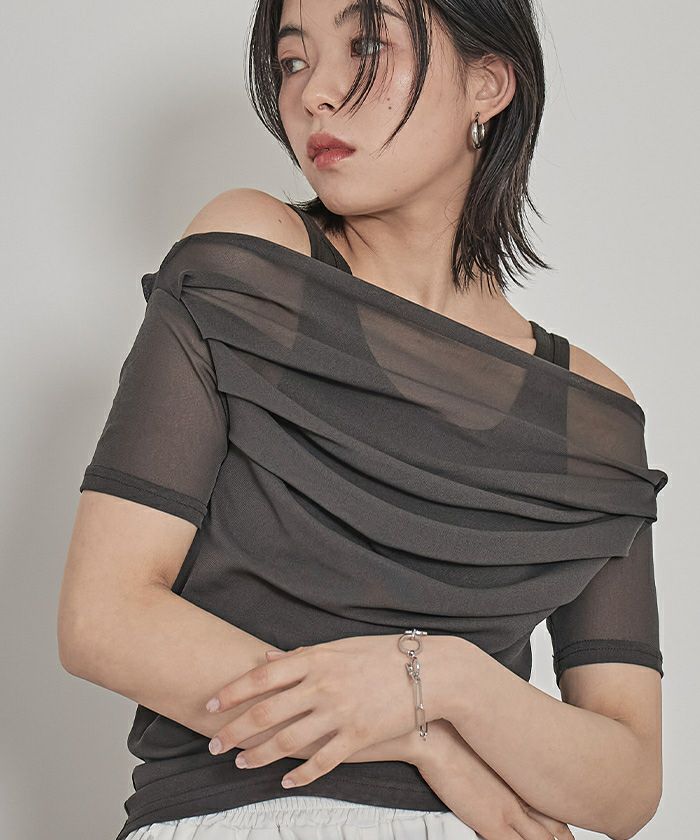 ・程よい肌見せが叶うオフショルデザインに、トレンド感たっぷりのシアー素材を掛け合わせた大人可愛いトップス