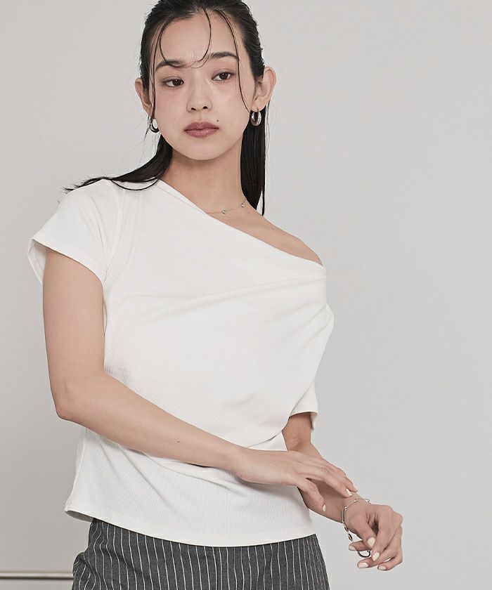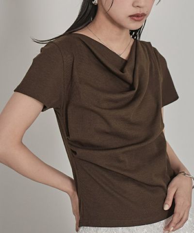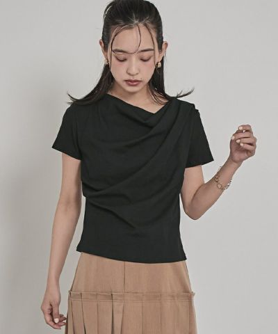 ・首周りの立体感のあるドレープデザインがデコルテラインを綺麗に見せてくれます◎