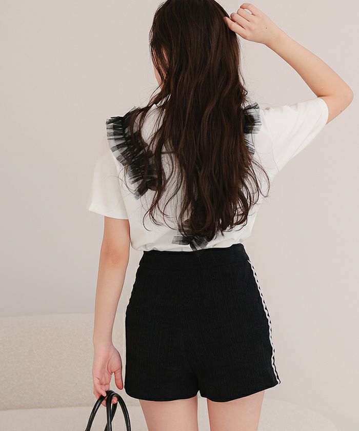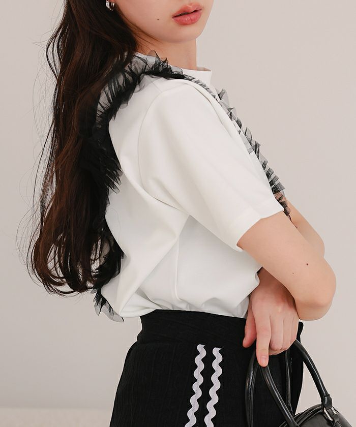 チュールフリルTシャツ【miette ミエット】【メール便可/100】