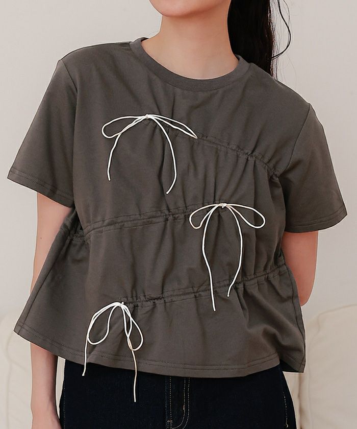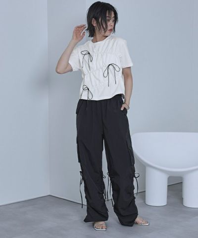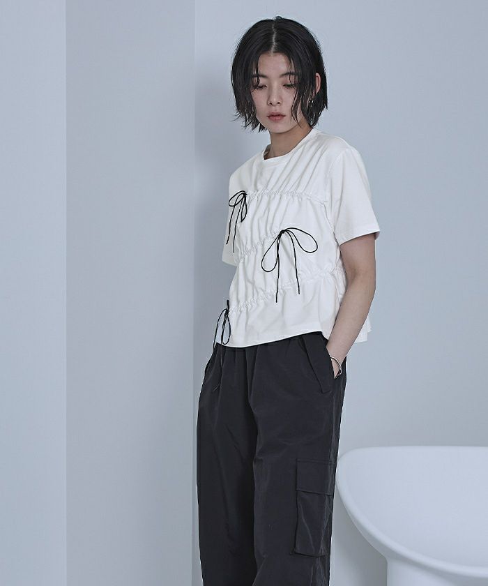 ・ドロストのギャザーデザインがトレンド感のあるトップス