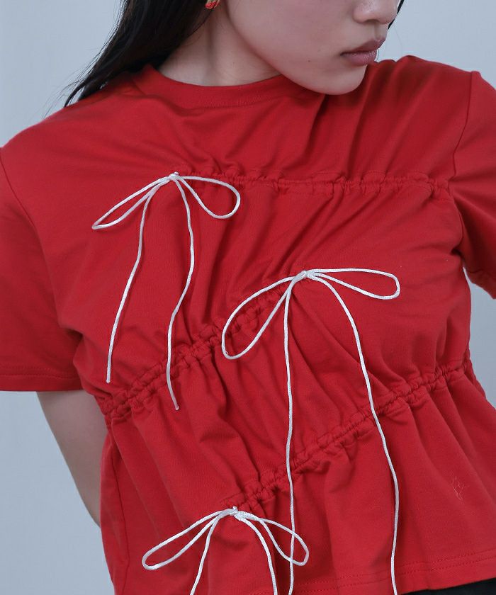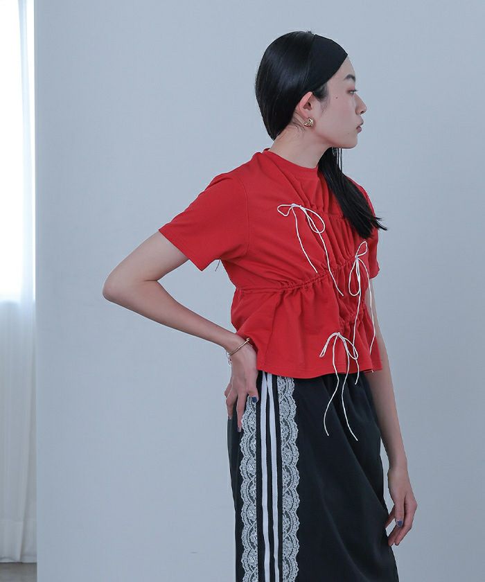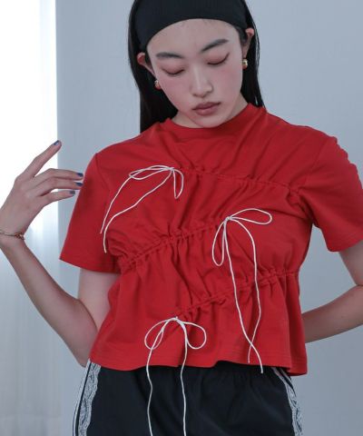 【miette】【期間限定★SALE】 ドローストリングリボン半袖トップス【miette ミエット】