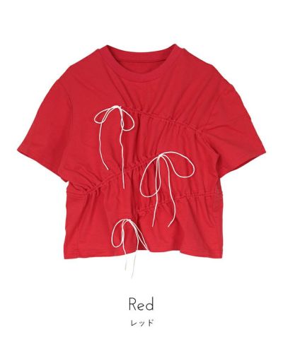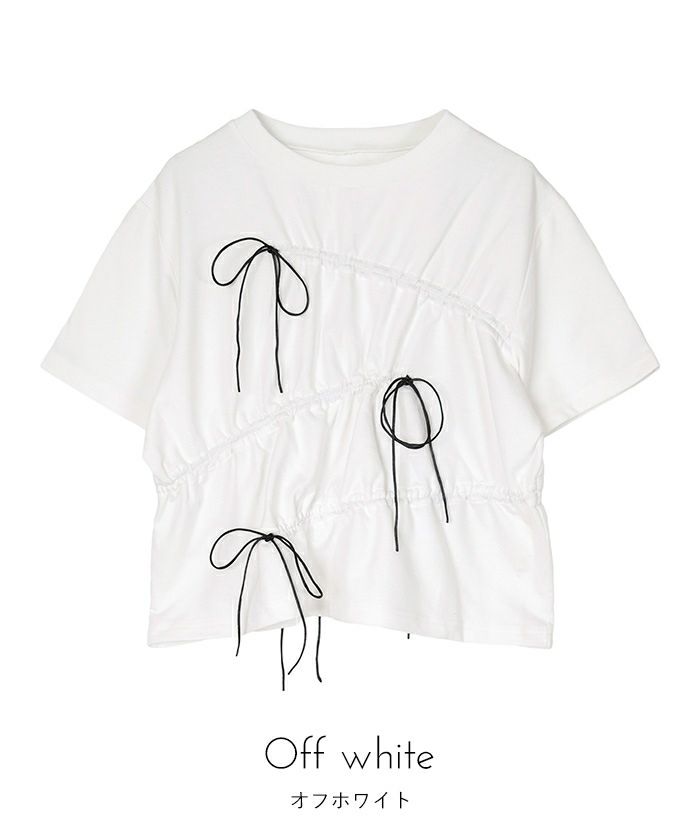 ドローストリングリボン半袖トップス【miette ミエット】