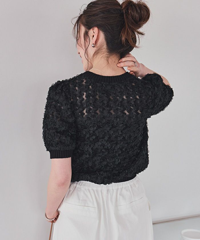 透け感がかわいく、ほどよいパフスリーブがおしゃれです。