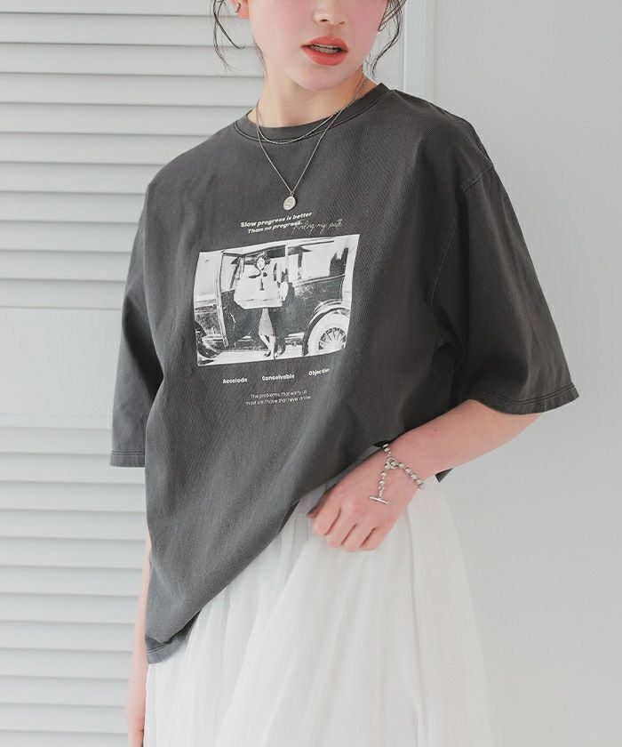 ・こなれ見えが叶う、ピグメント加工されたプリントフォトTシャツ。