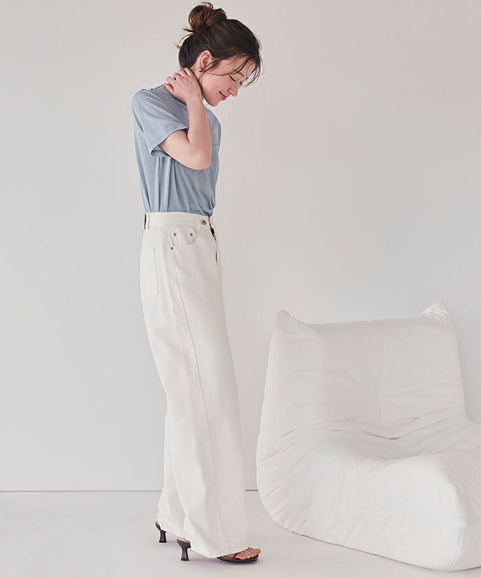 ・襟ぐりは細めの切り替えに仕上げ、カジュアルすぎず女性らしいTシャツシルエットに仕上げました