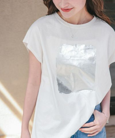 箔プリントフレンチスリーブTシャツ【メール便可/90】