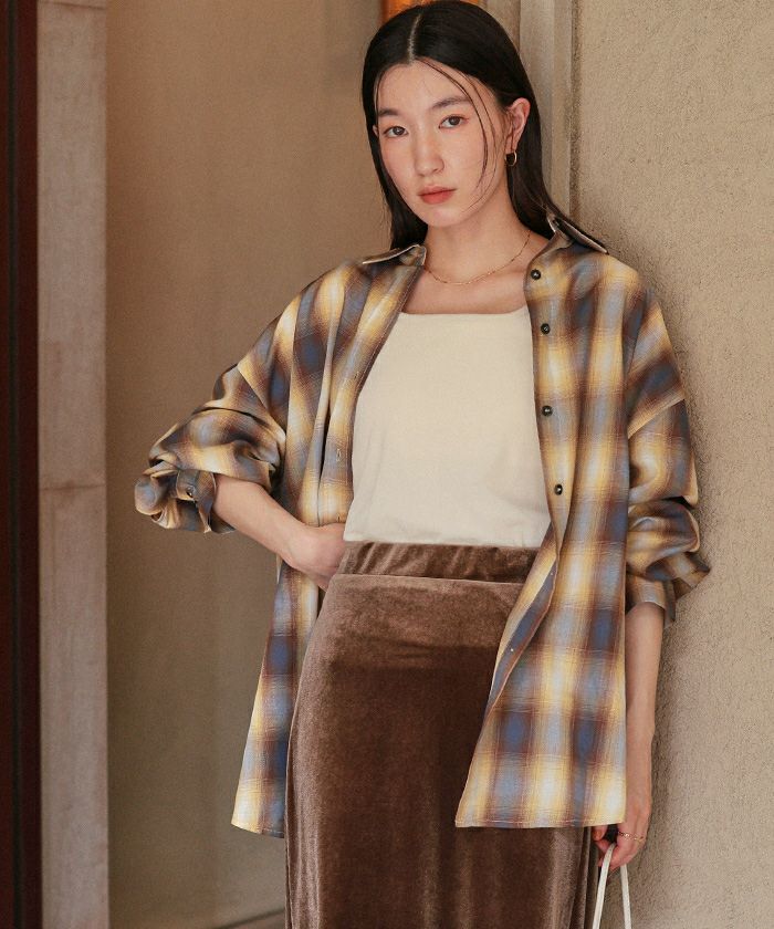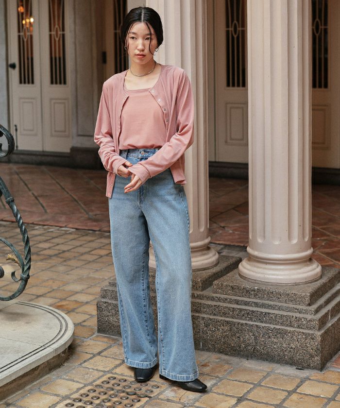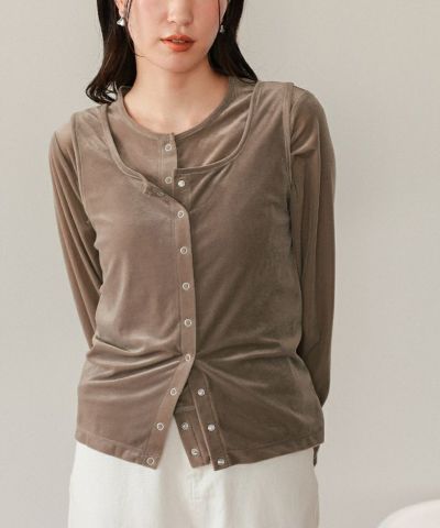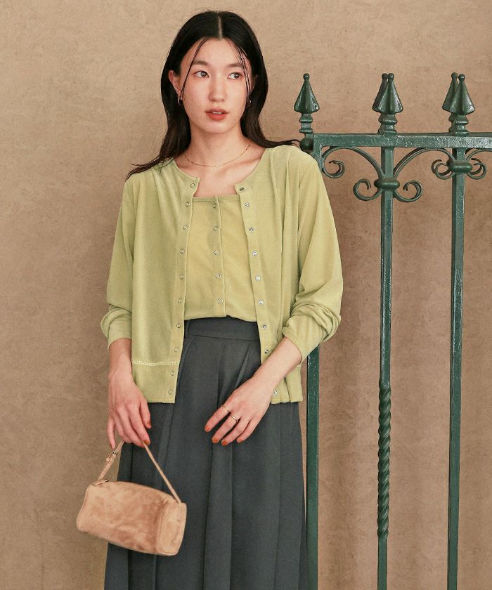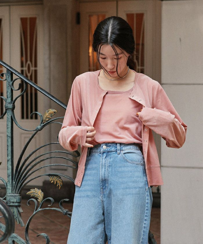 カーディガンに合わせるだけでなく、他のアイテムに合わせられますし、一枚でもベロア素材なので素敵に着れます。