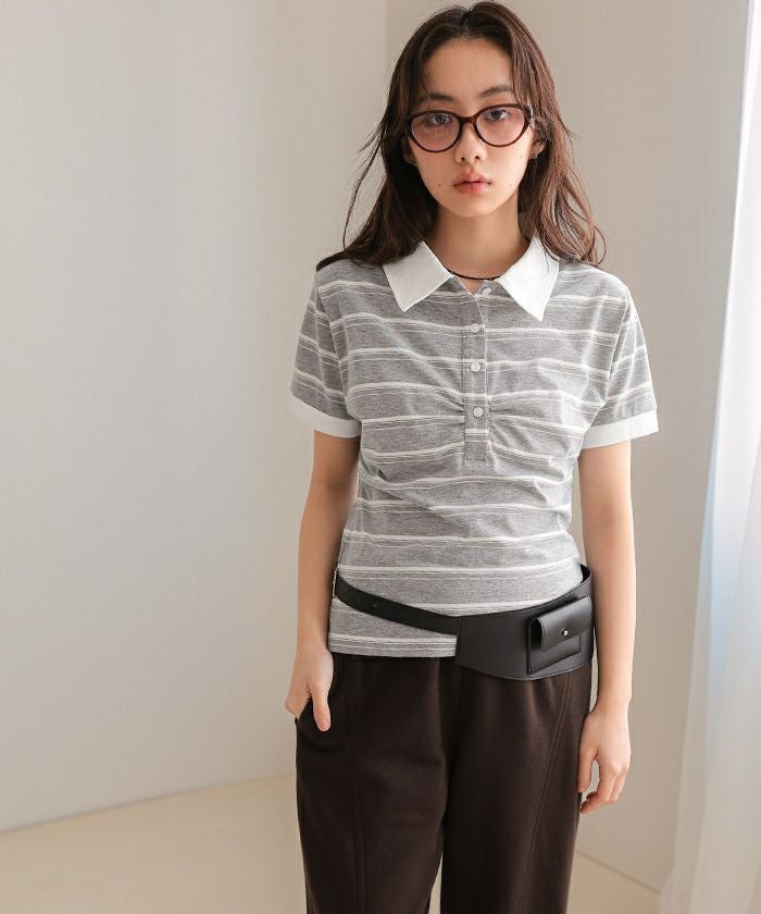 マルチボーダー半袖ポロTシャツ【miette ミエット】【メール便可/100】