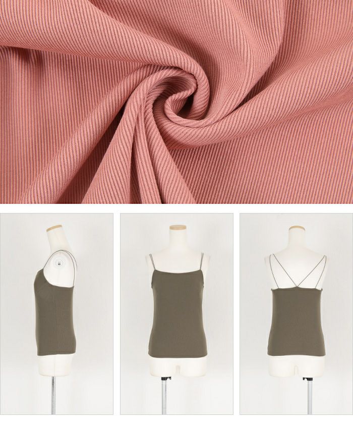 ・肌触りの良いリブ素材のダブルストラップパッド付キャミソール。