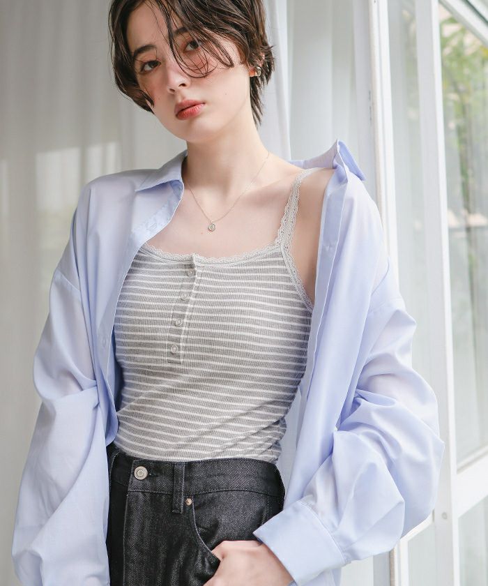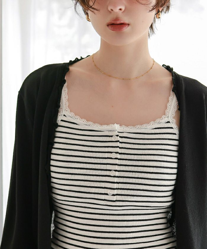 ・胸元にもさりげないレースをあしらい、インナーでありながらも見せても使えるデザイン