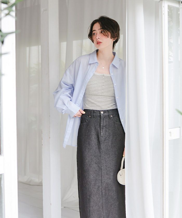 ・身体に程よくフィットする素材感で、トップスのインナーとしてはもちろん、シャツやカーディガンに合わせたレイヤードスタイルにもおすすめ