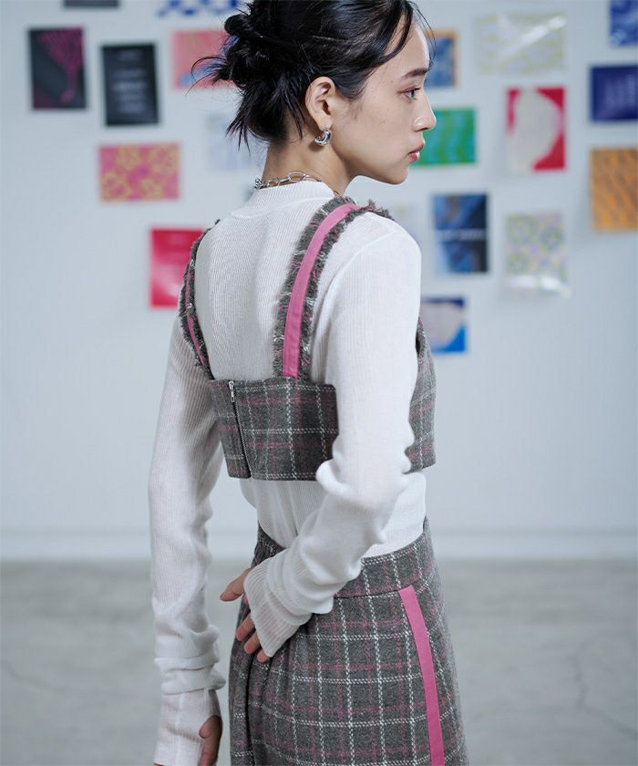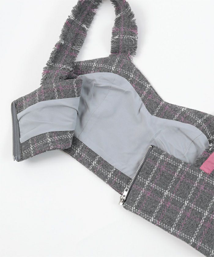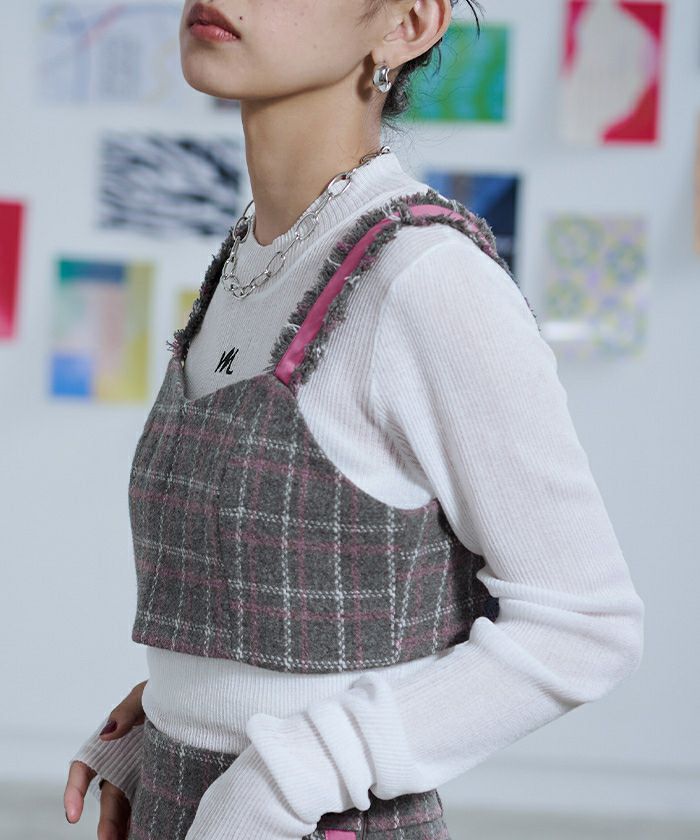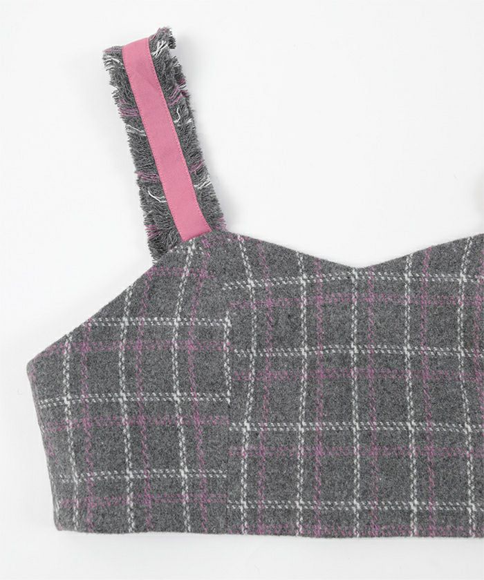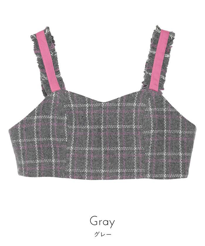 チェック柄フリンジビスチェ【miette ミエット】【メール便可/50】