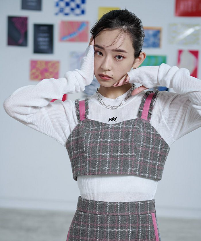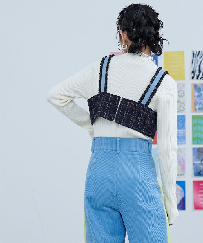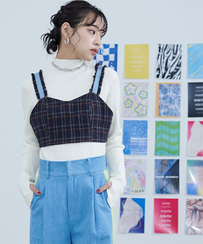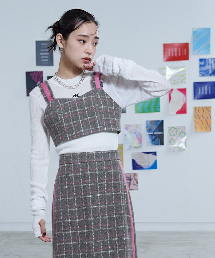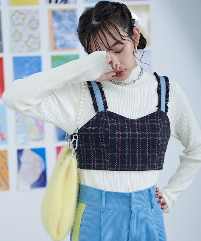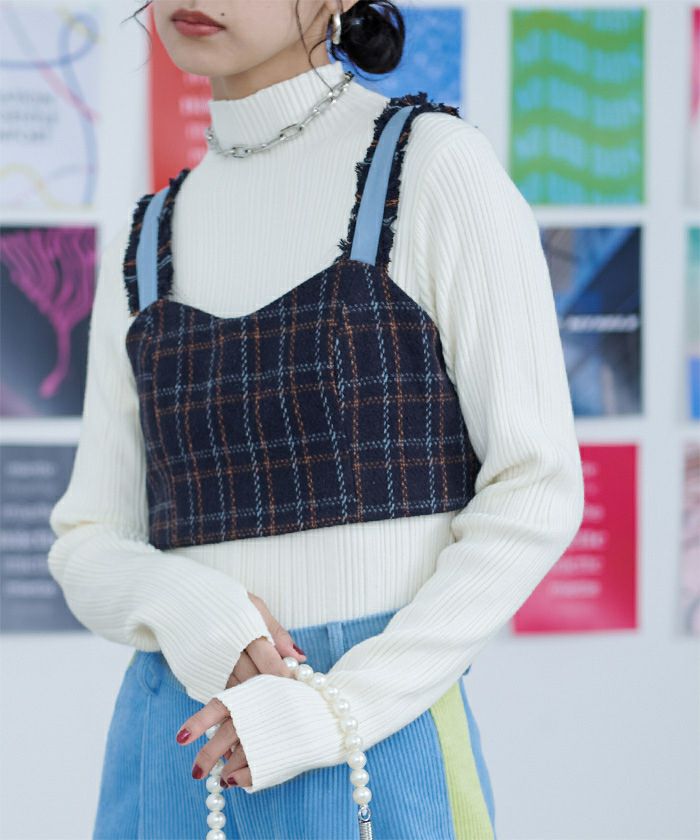 チェック柄フリンジビスチェ【miette ミエット】【メール便可/50】
