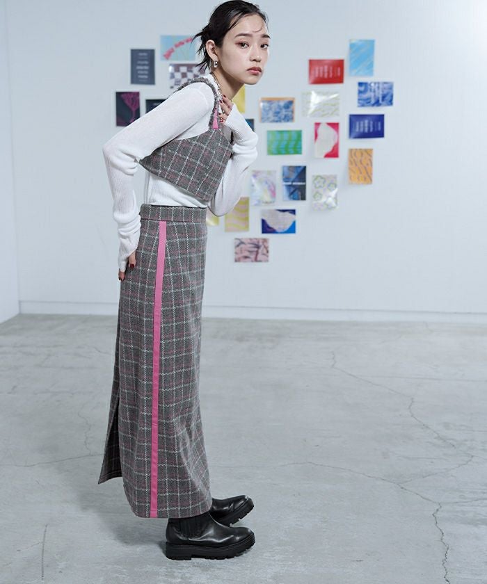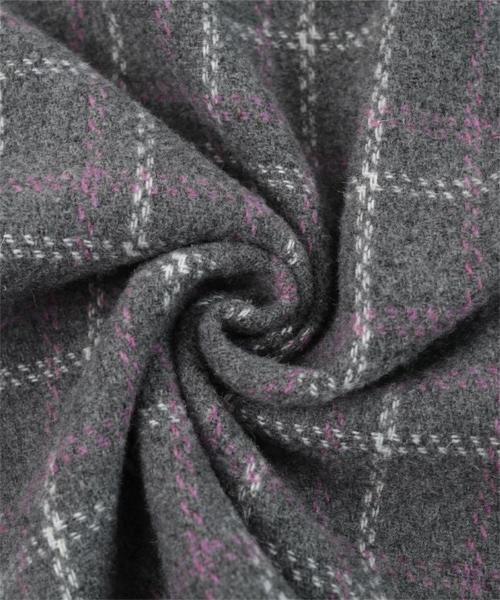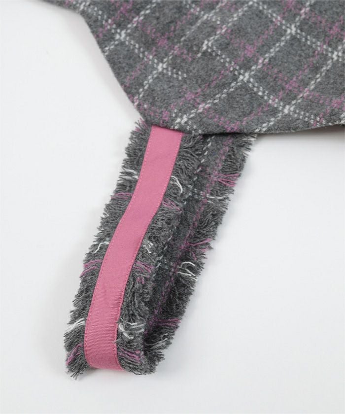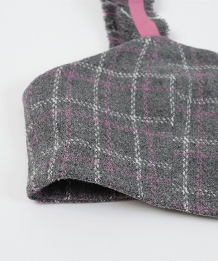 ・季節感のあるウール混素材のチェックフリンジビスチェ。