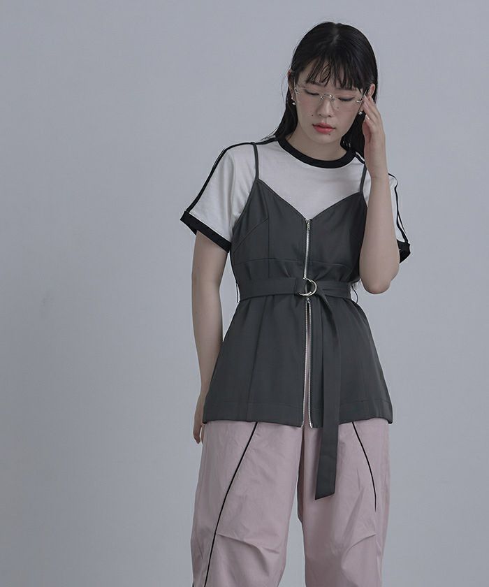 ベルト付きフロントジップビスチェ【miette ミエット】