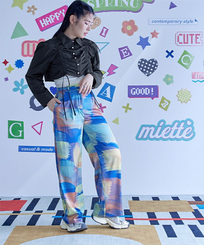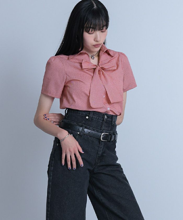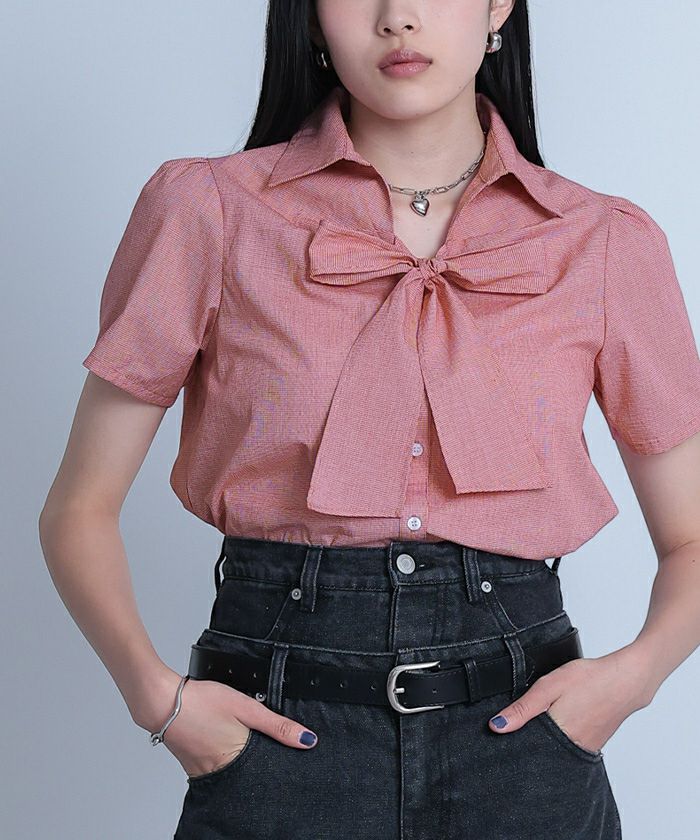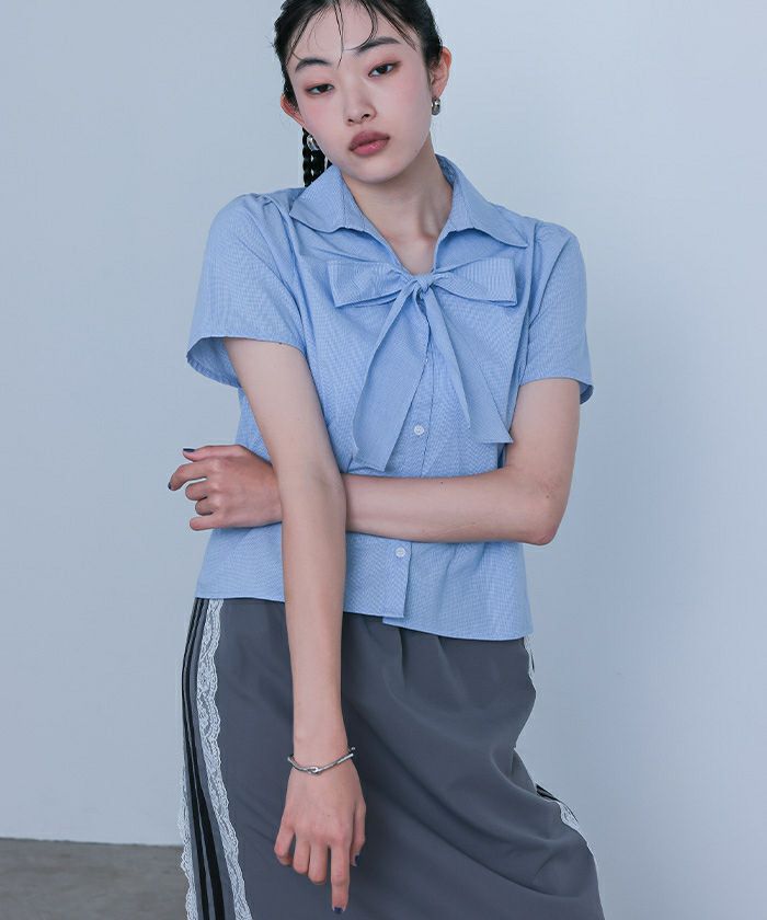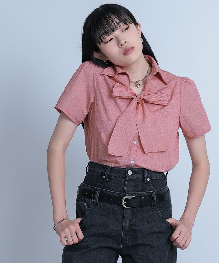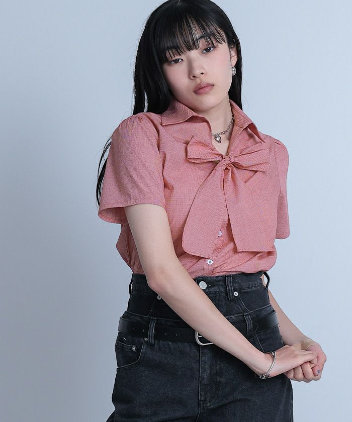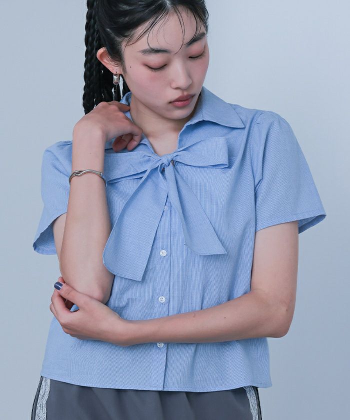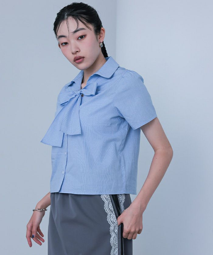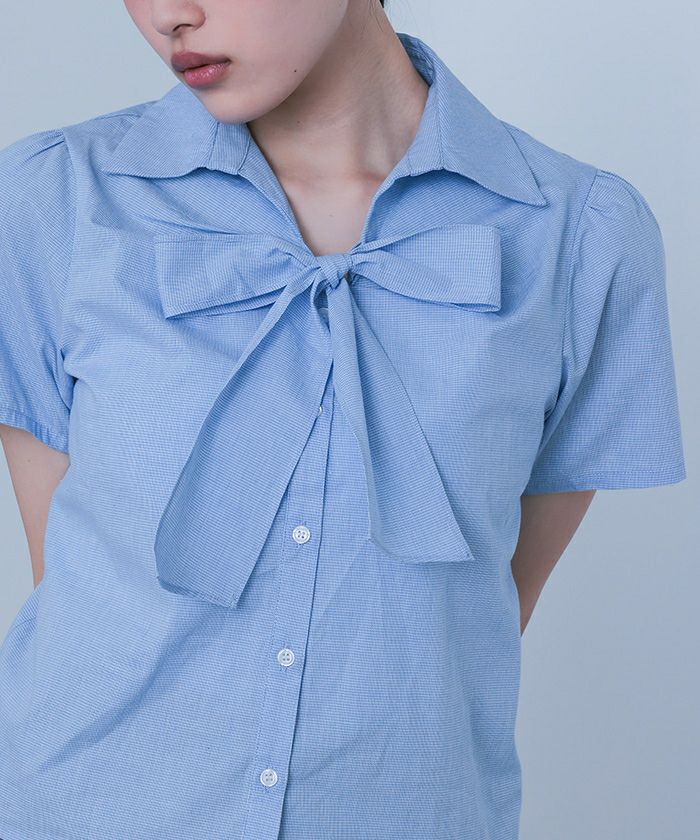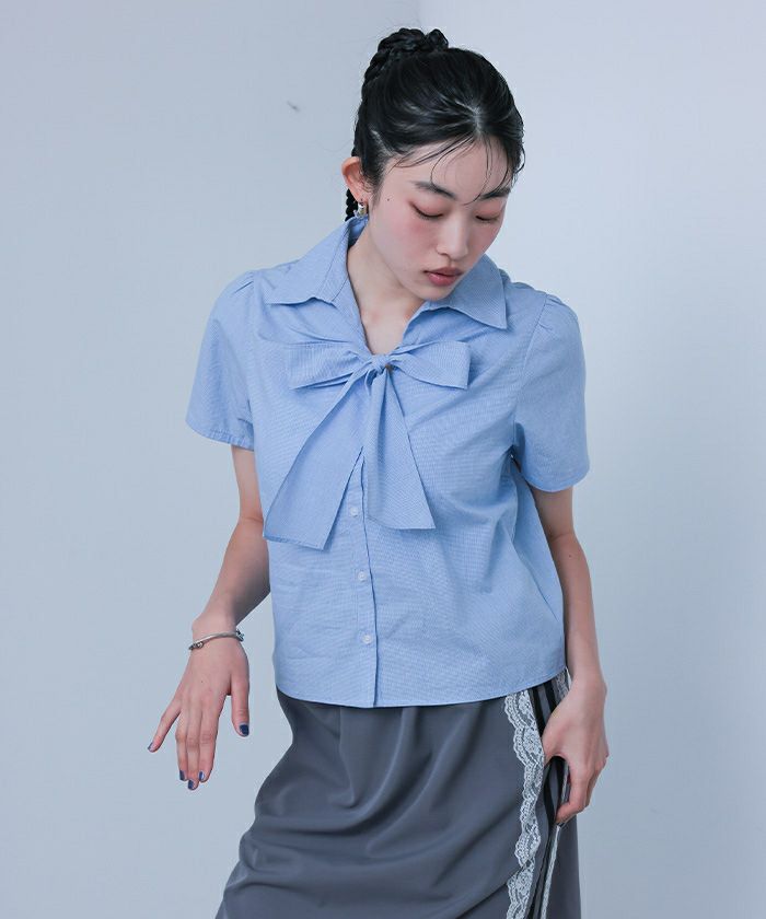 【miette】【期間限定★SALE】 フロントリボンパフスリーブシャツ【miette ミエット】【メール便可/100】