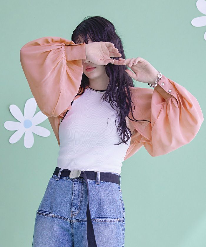 【titivate】【期間限定★SALE】 ボリュームスリーブバック釦ブラウス【メール便可/100】