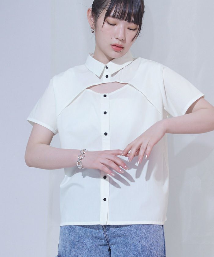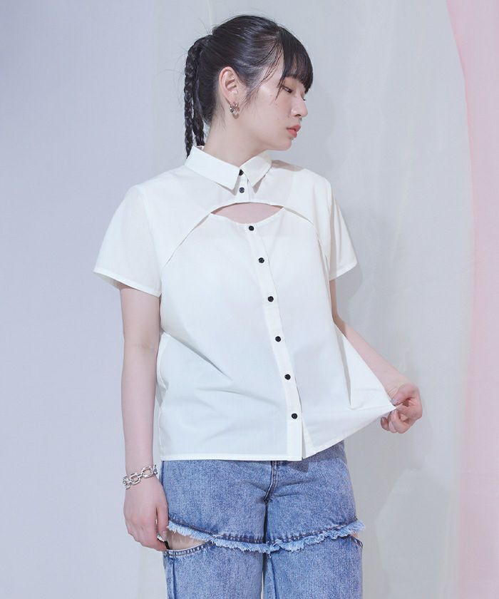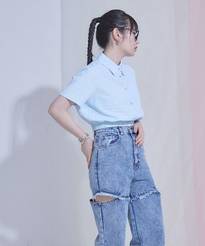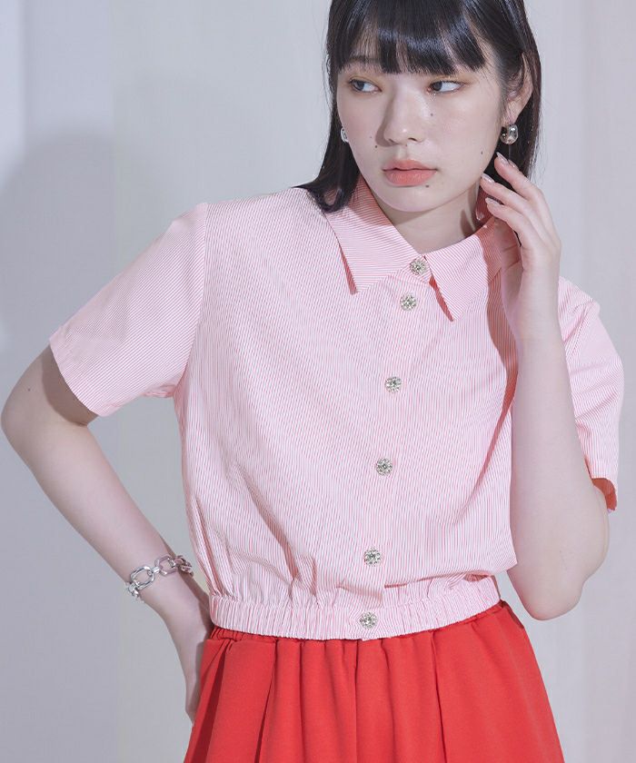 他の画像を見る 【miette】【期間限定★SALE】 ビジューボタンクロップドシャツ【miette ミエット】【メール便可/100】 通常価格 ¥ 5,489 価格 ¥ 2,744 税込 お気に入りに登録する