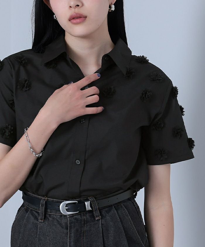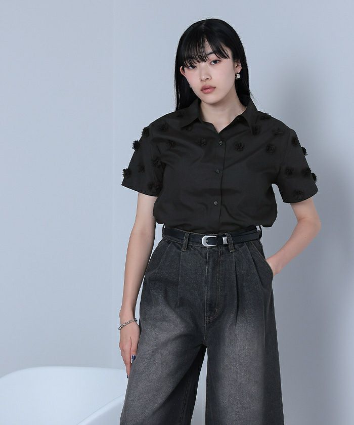 【titivate】【期間限定★SALE】 襟付ビジューシャツ【メール便可/100】