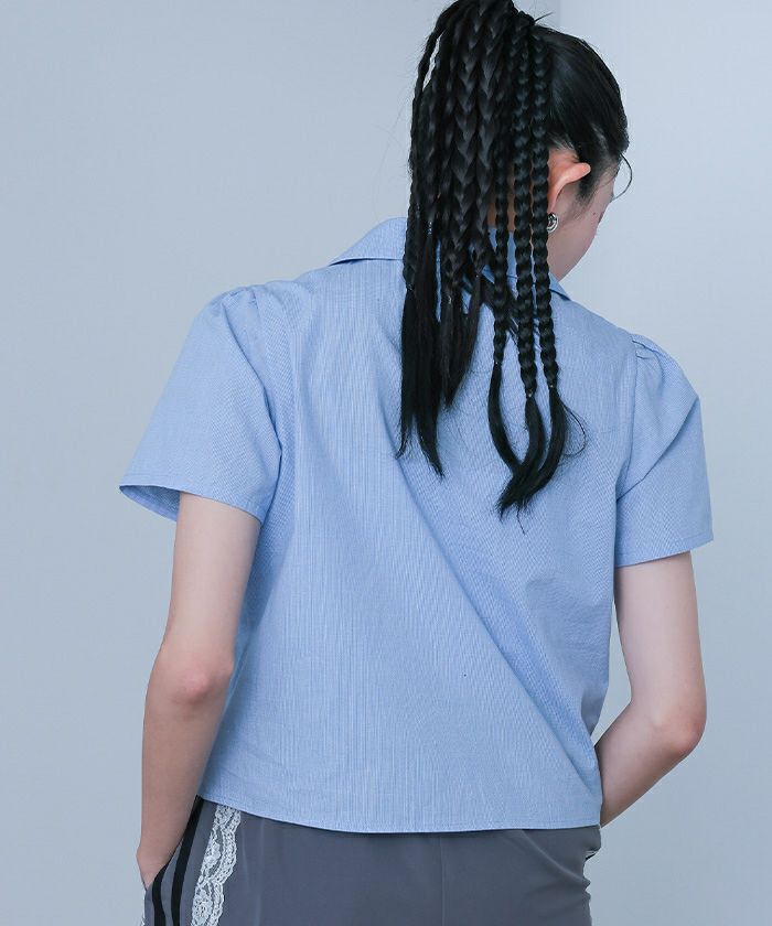 【titivate】 バックフリルバンドカラーシャツ