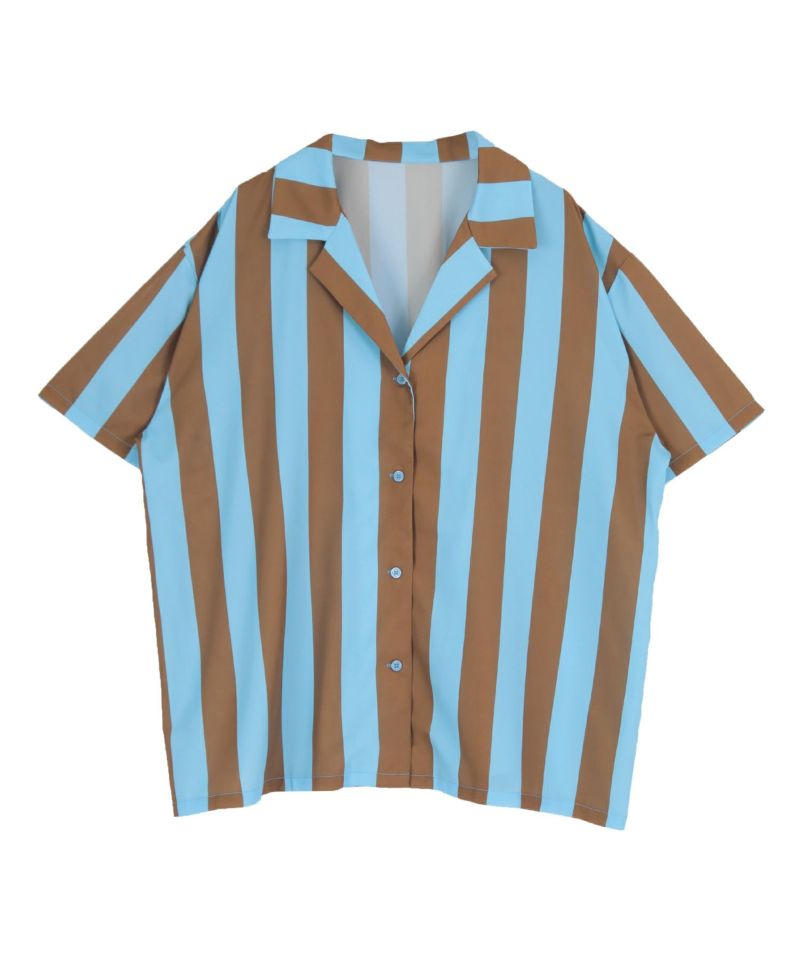 ストライプオーバーサイズ開襟シャツ【miette ミエット】【メール便可/100】