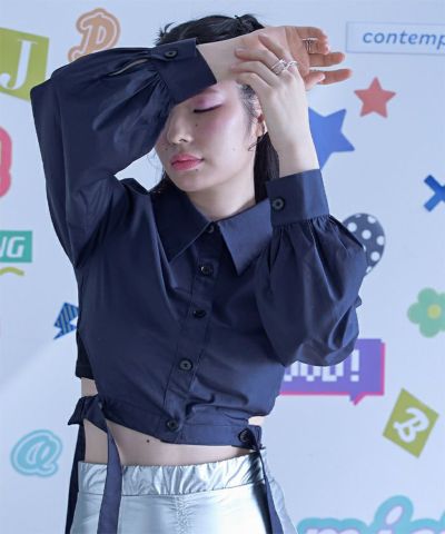 ・サイドベルトがポイントのショートシャツ。