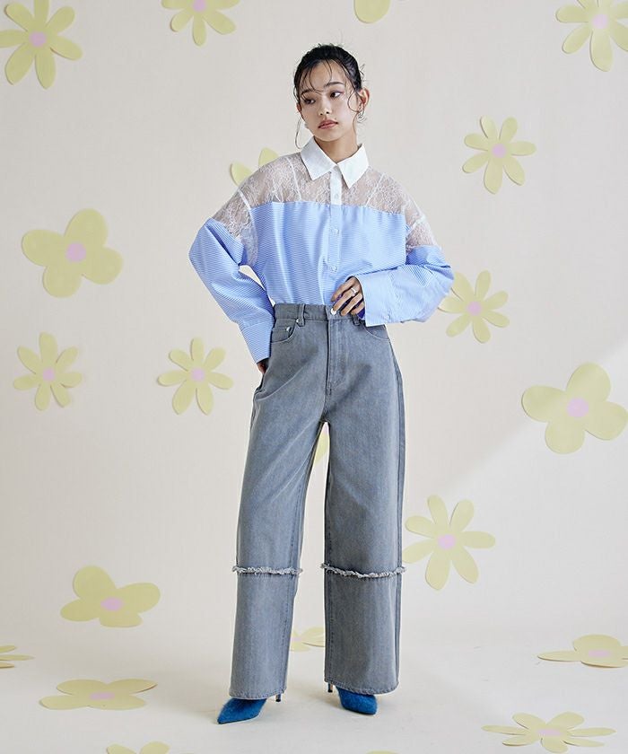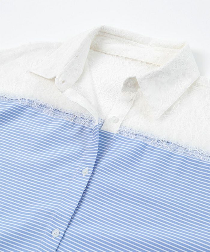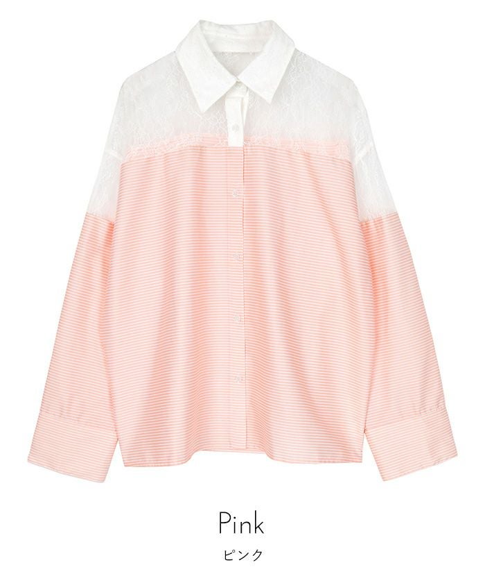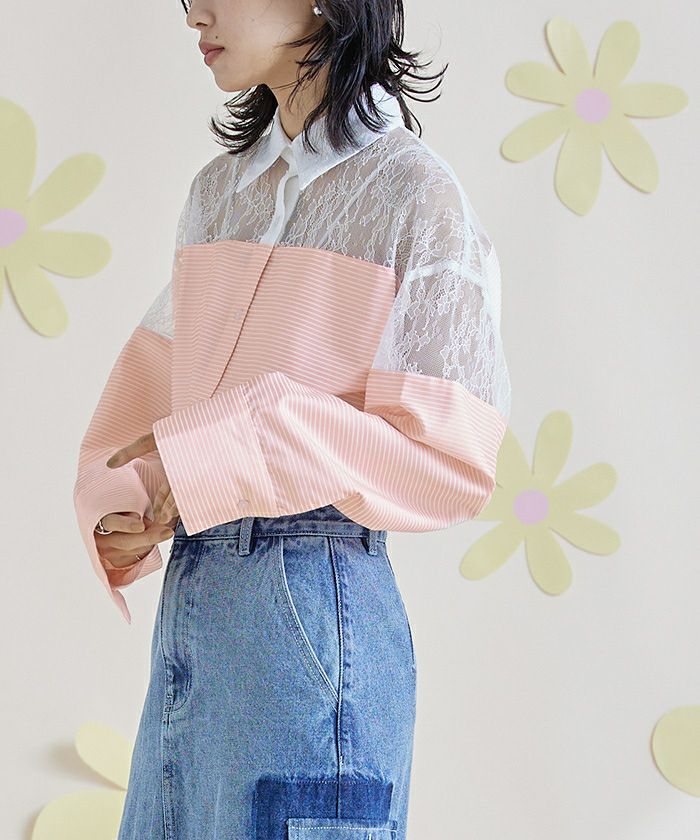 ・ヨーク部分のレース切替が女性らしい抜け感を演出するシャツ。