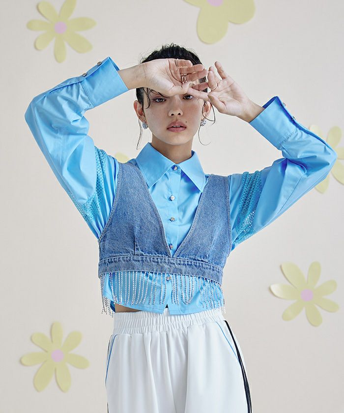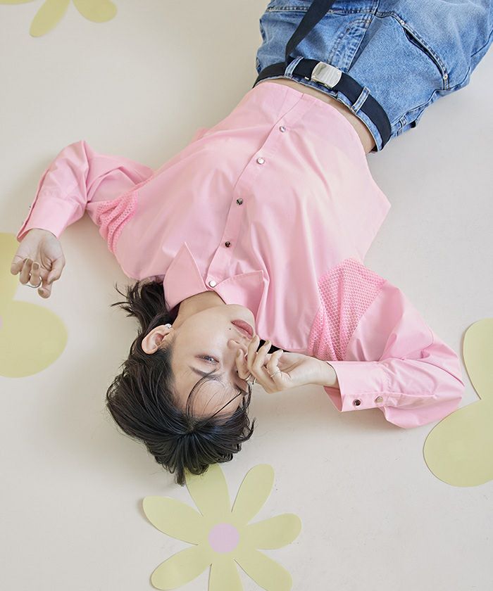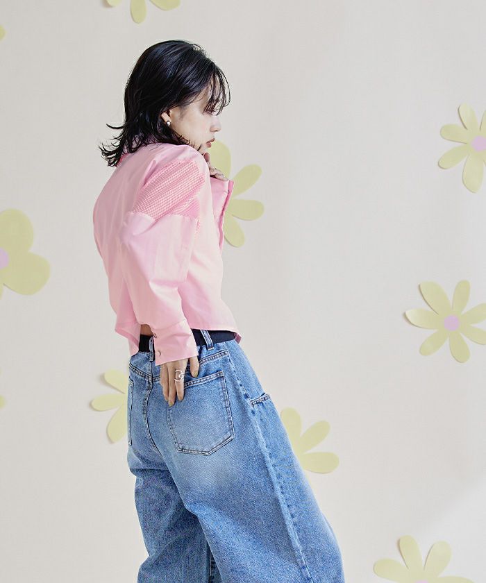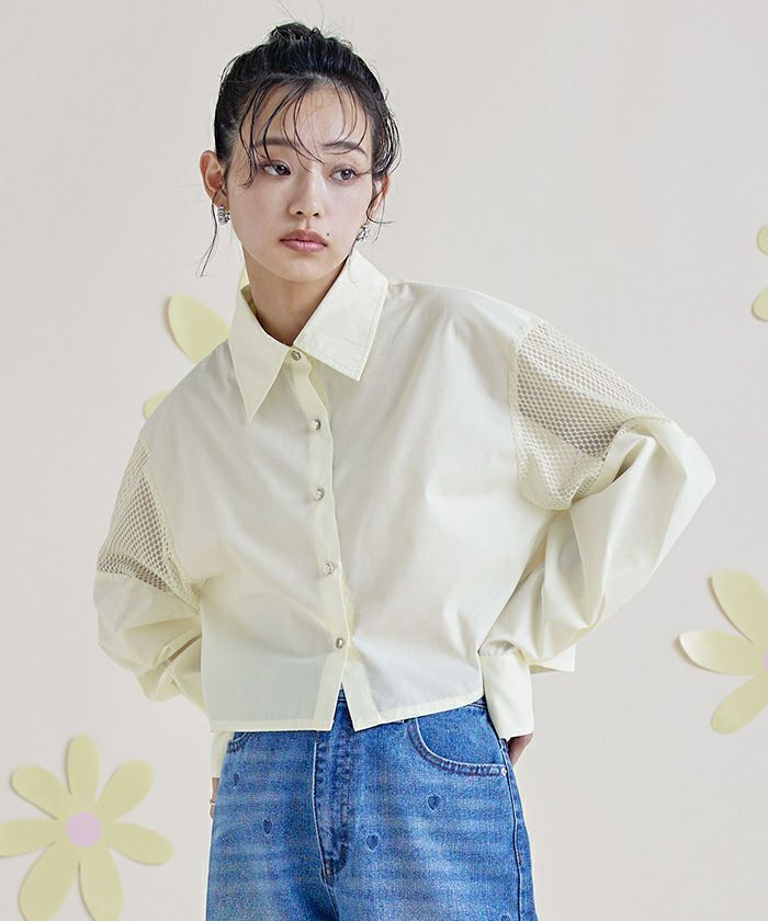 ・袖のメッシュ切替は抜け感を演出するクロップドシャツ。
