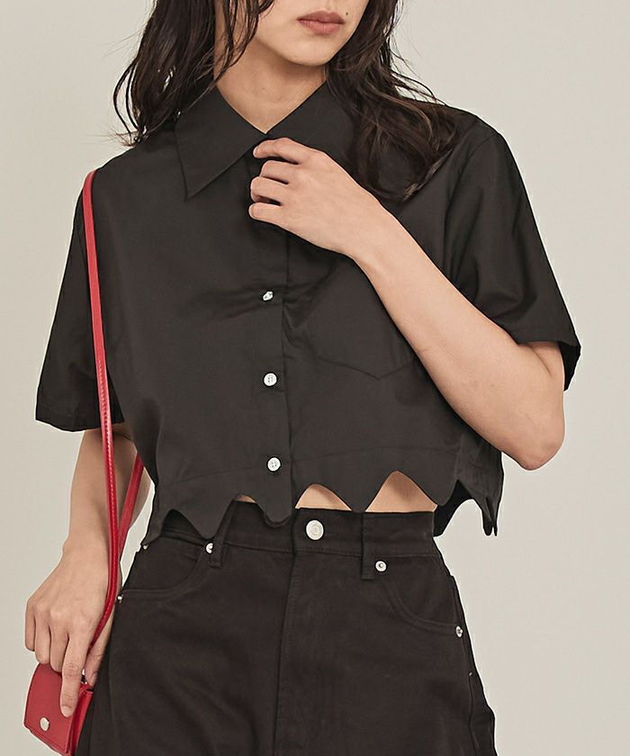 ウェーブヘムクロップドシャツ【miette ミエット】【メール便可/50】