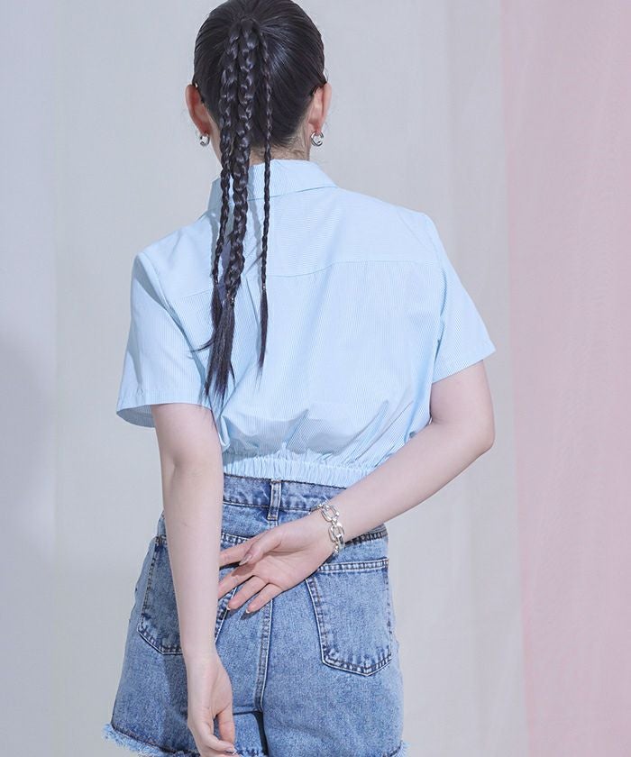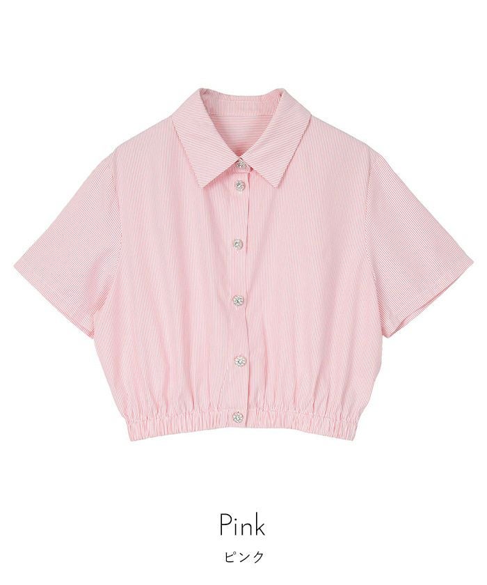 ビジューボタンクロップドシャツ【miette ミエット】【メール便可/100】