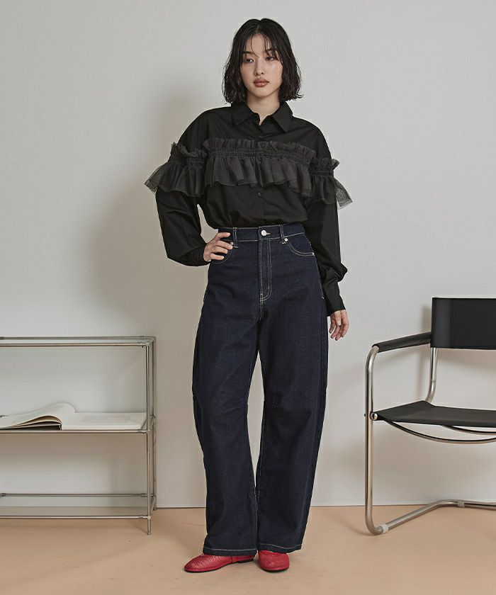 ・チュールフリルが存在感があり1枚でおしゃれに決まるデザイン。