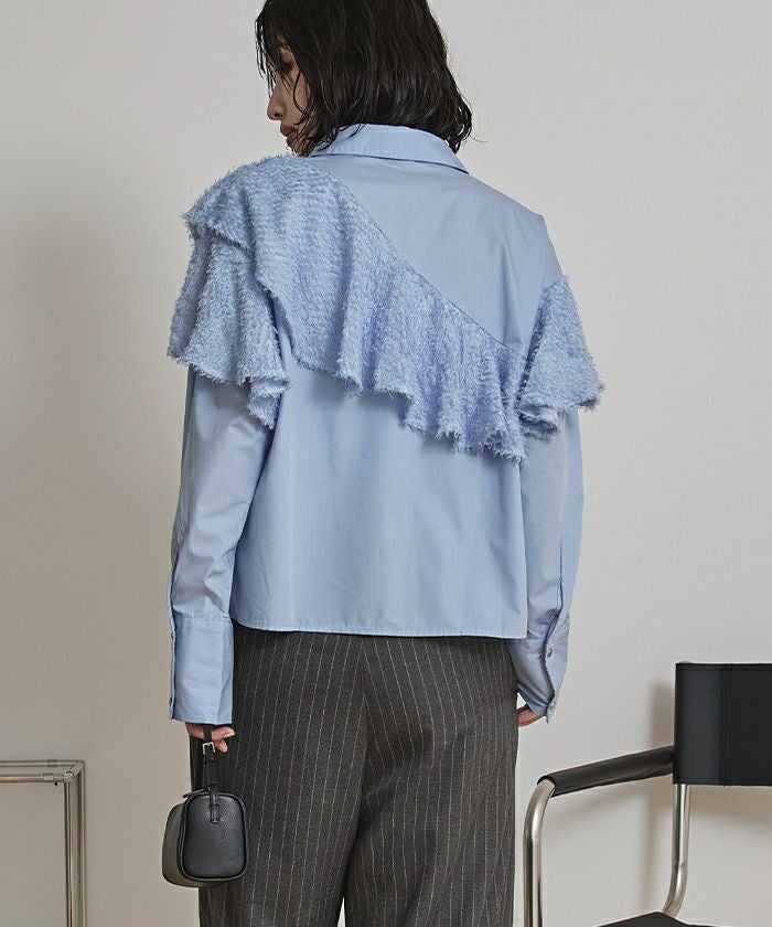 ・アシンメトリーなラッフルデザインがポイントのシャツ。