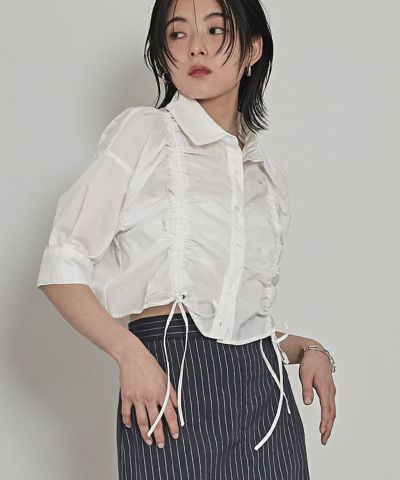 ・フロント部分に施されたシャーリングデザインが魅力のショートシャツ