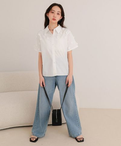 フラワーモチーフ半袖シャツ【miette ミエット】【メール便可/100】