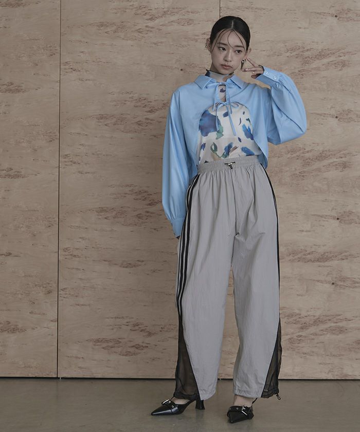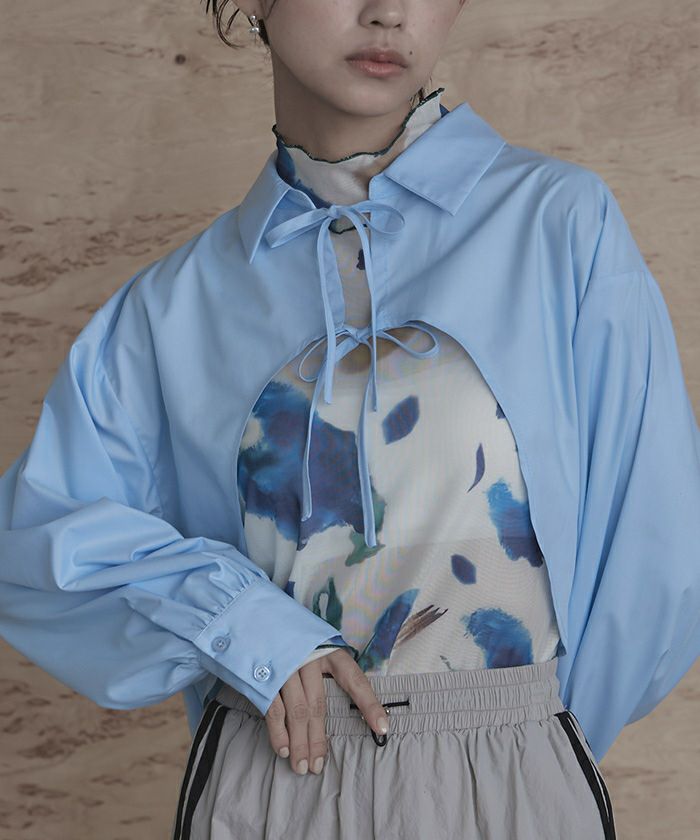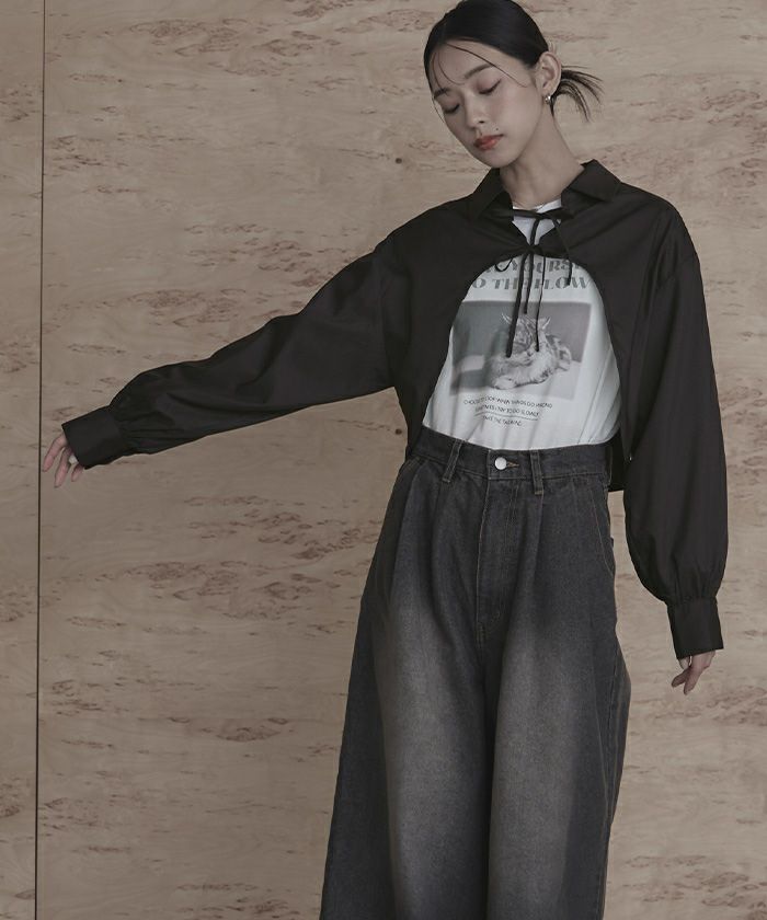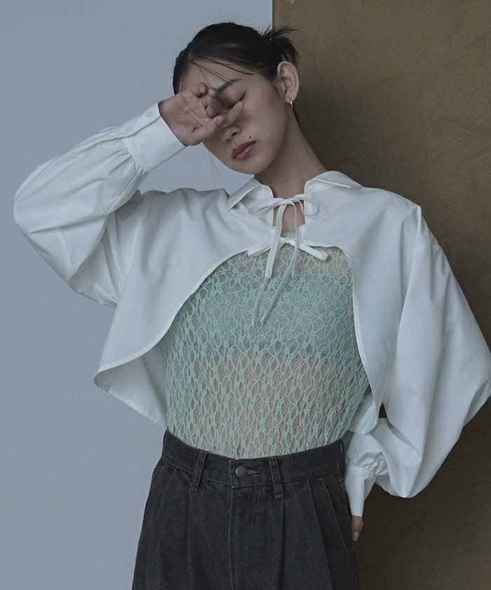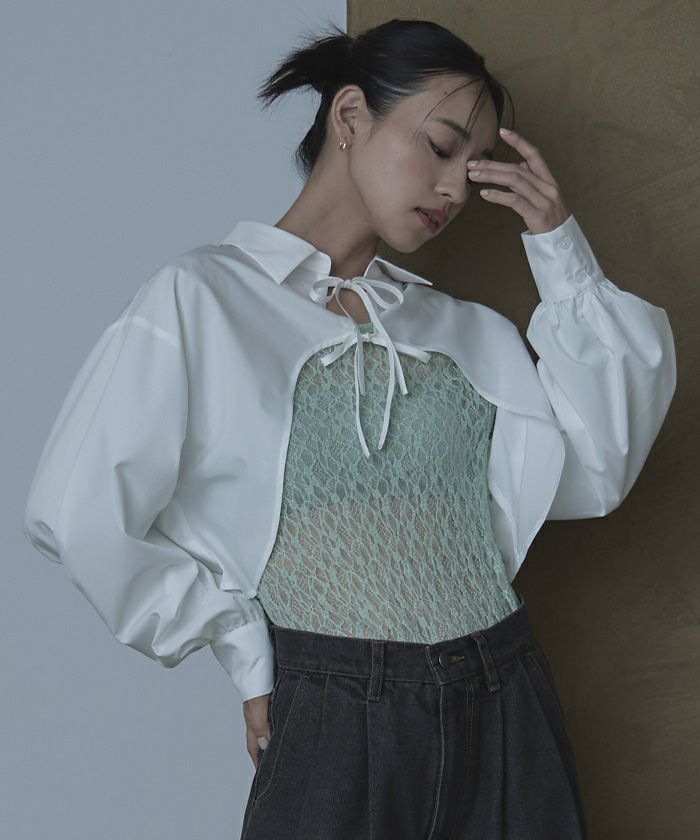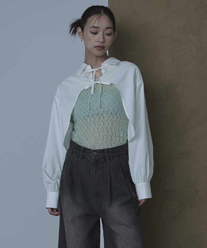 ・トレンド感のあるフロントリボンデザインのシャツボレロ