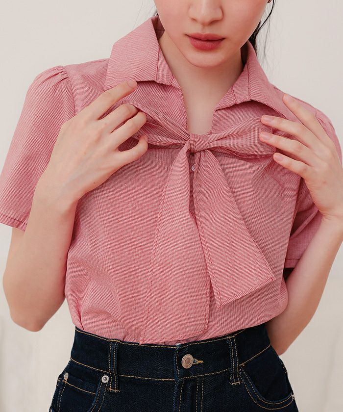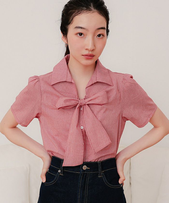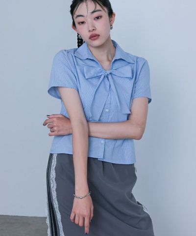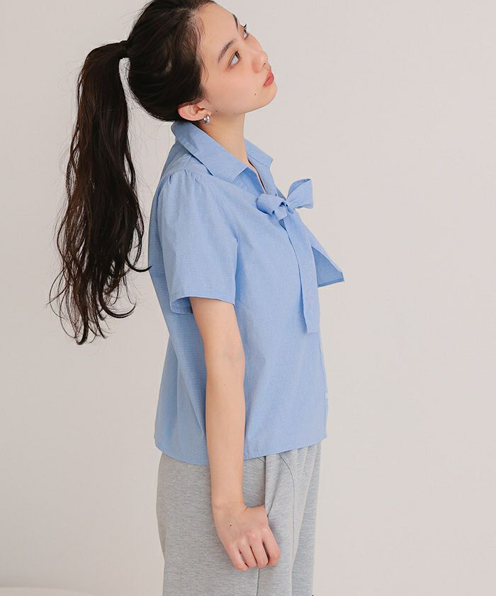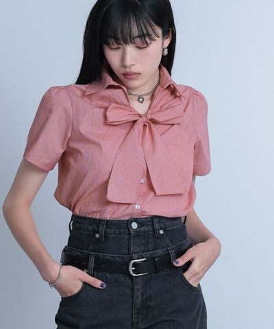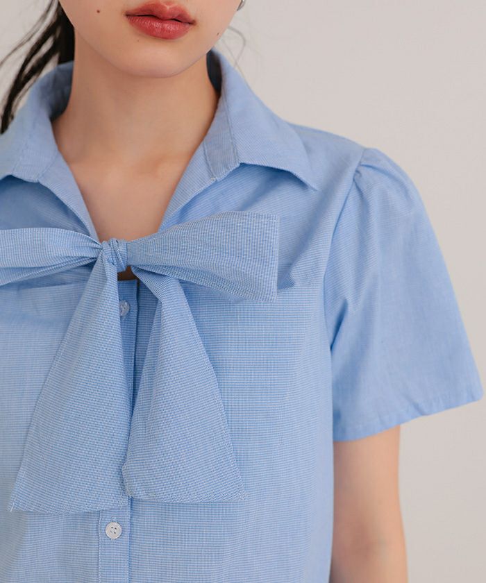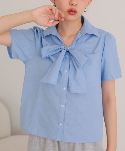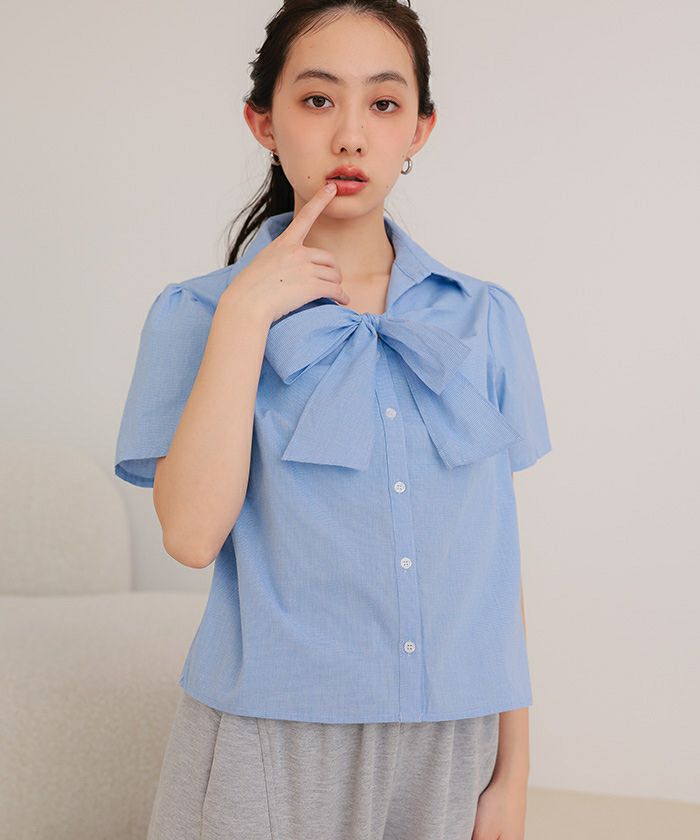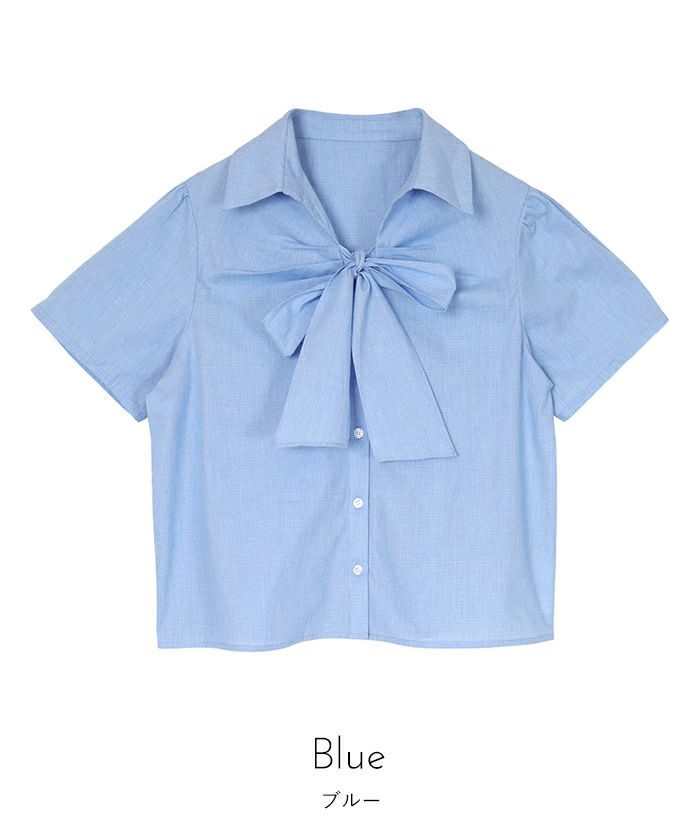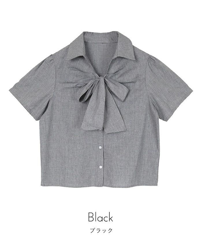 商品情報 ・フロントリボンとパフスリーブが女性らしいシャツ