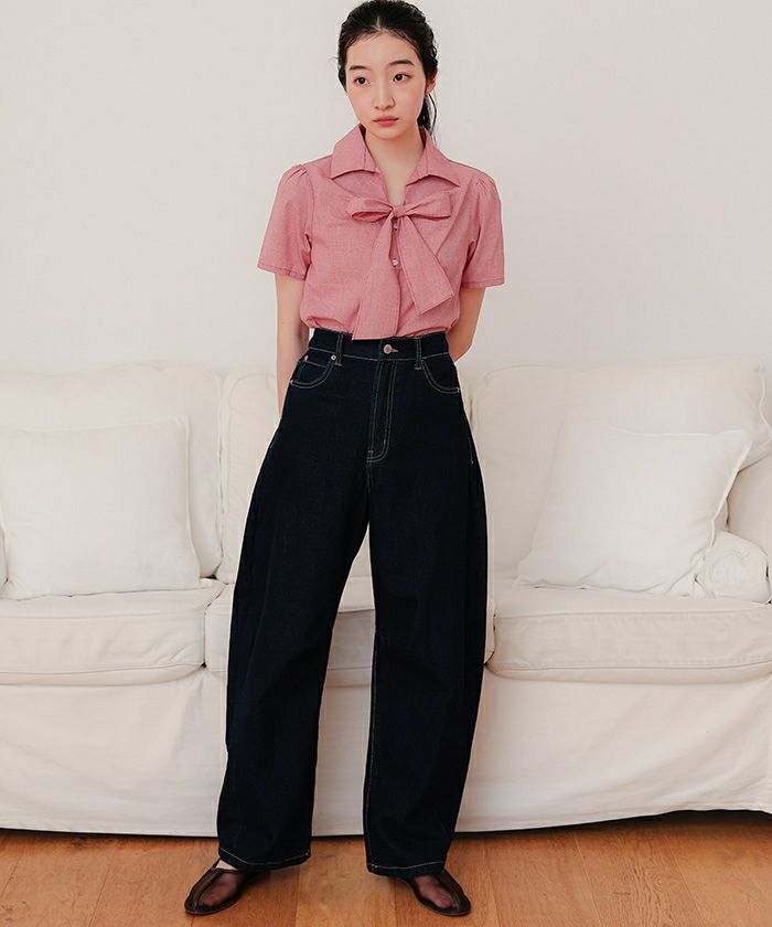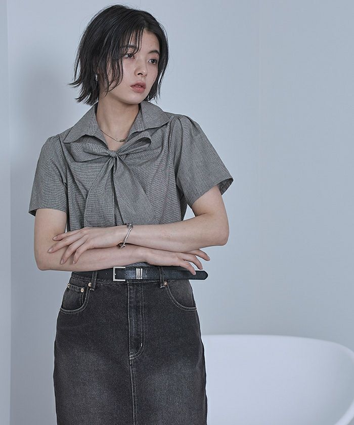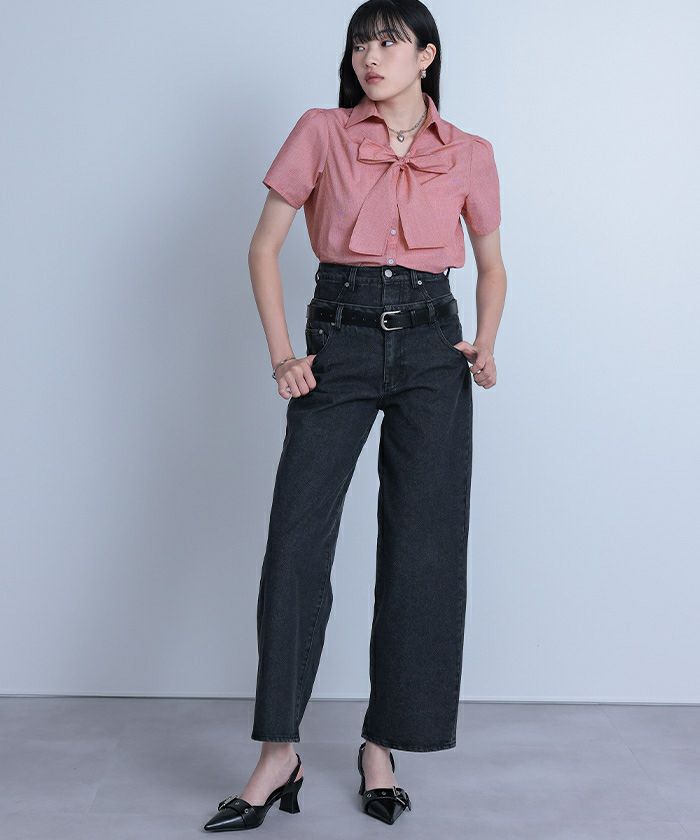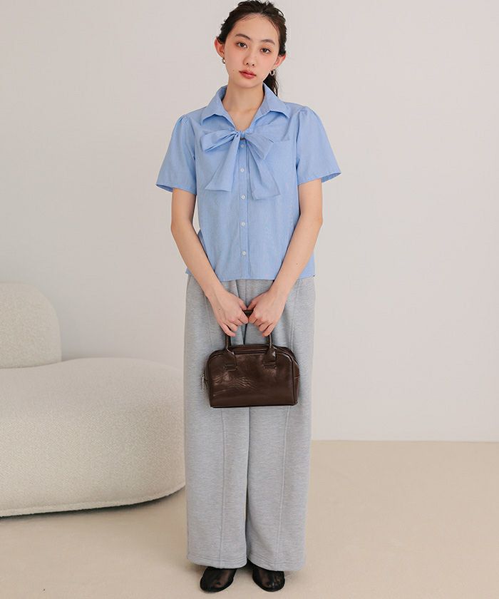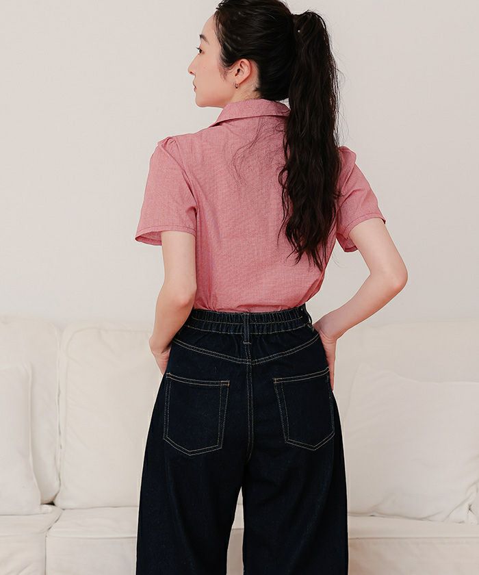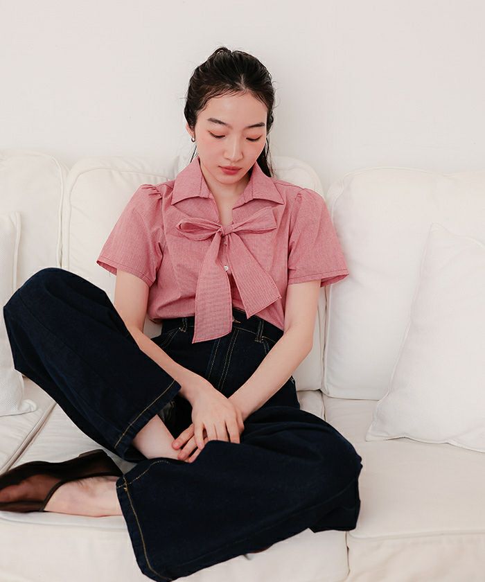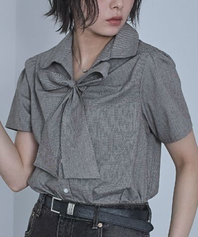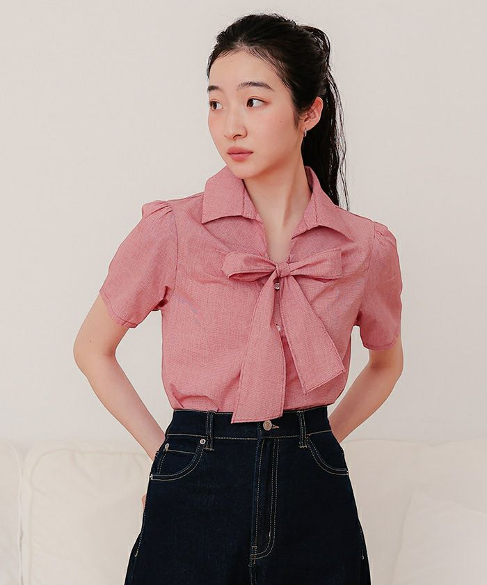 商品情報 ・フロントリボンとパフスリーブが女性らしいシャツ