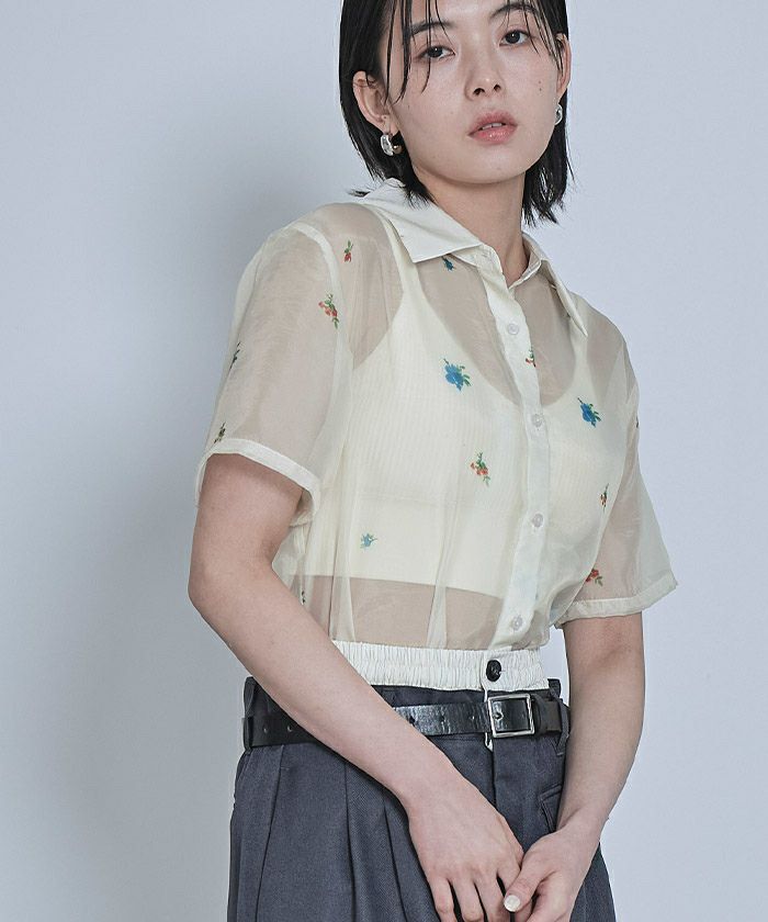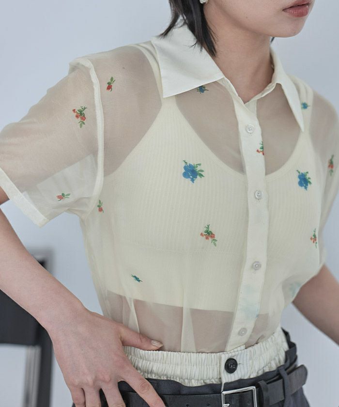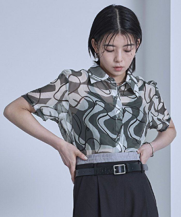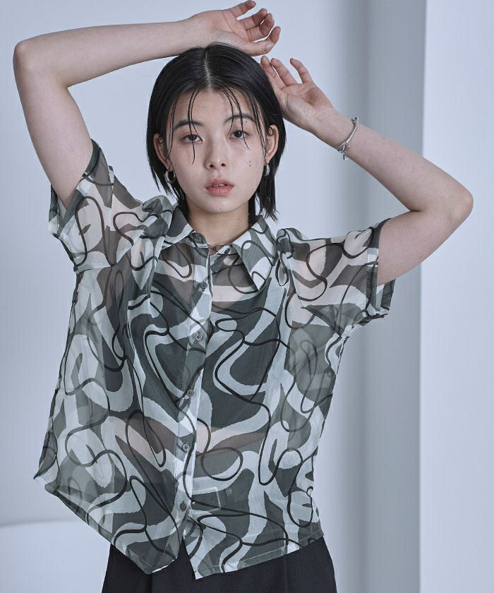 アソートプリント半袖シアーシャツ【miette ミエット】【メール便可/40】