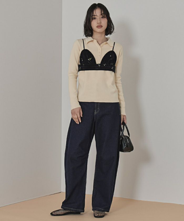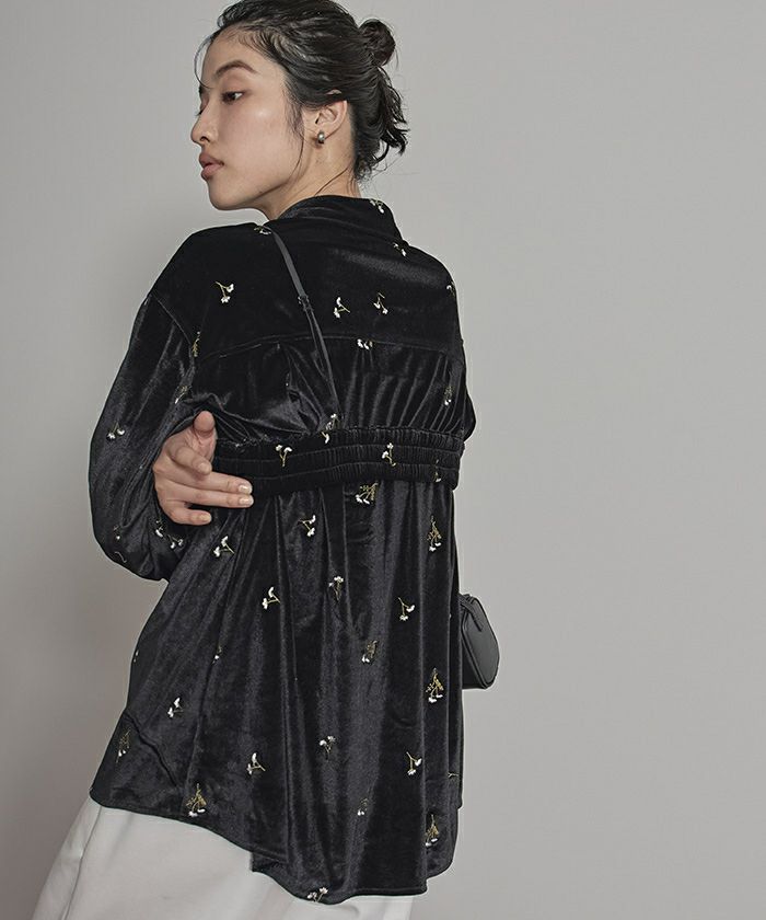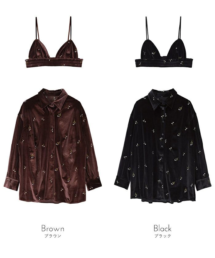 ・刺繍入りベロアシャツとベロアビスチェの2点セット
