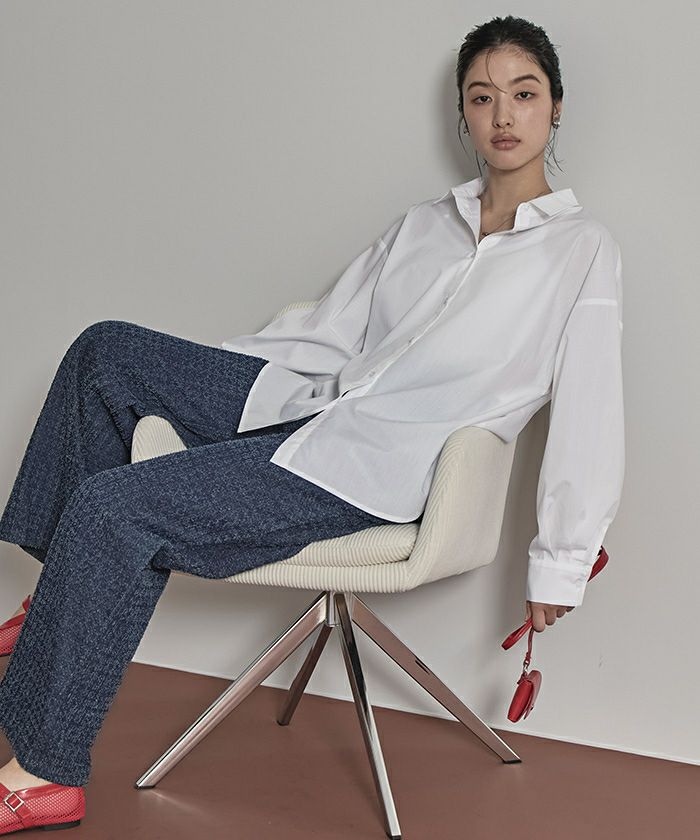 ・前を閉じても羽織ってもサマになるよう、ゆるっと着られるオーバーサイズ。