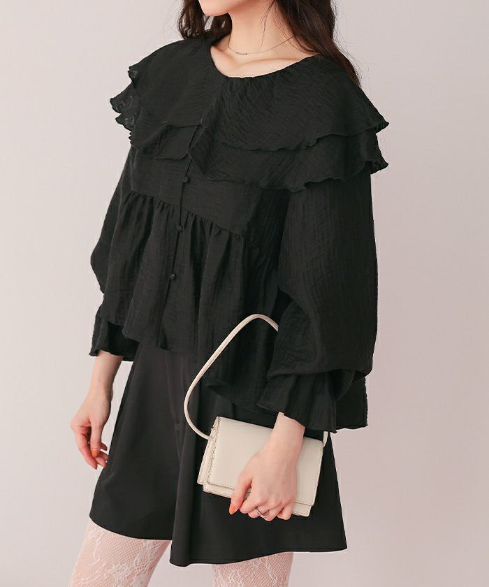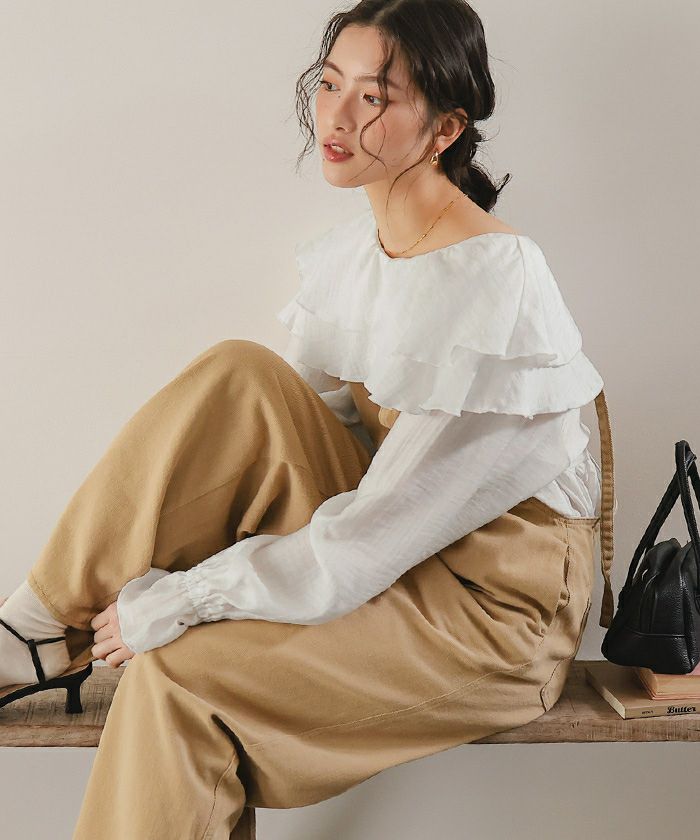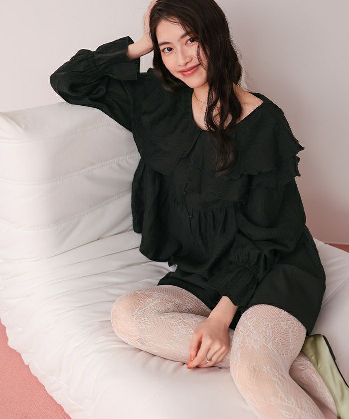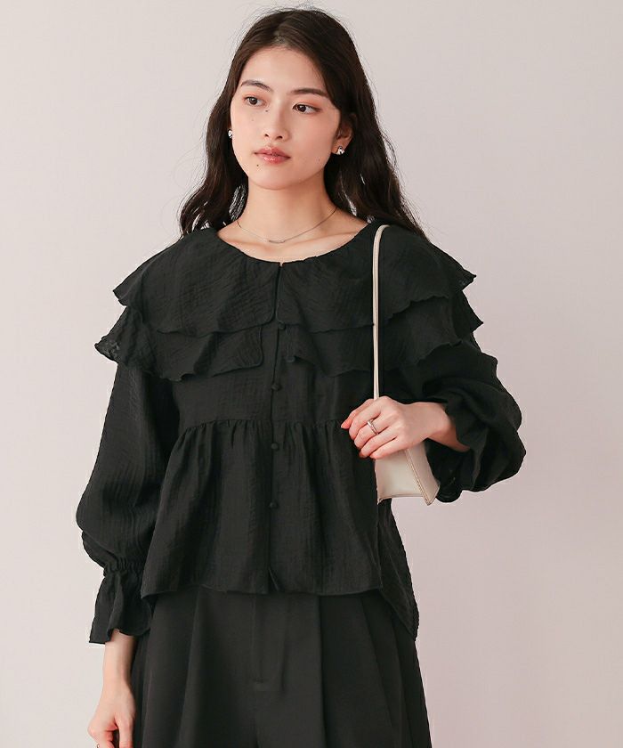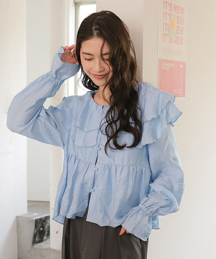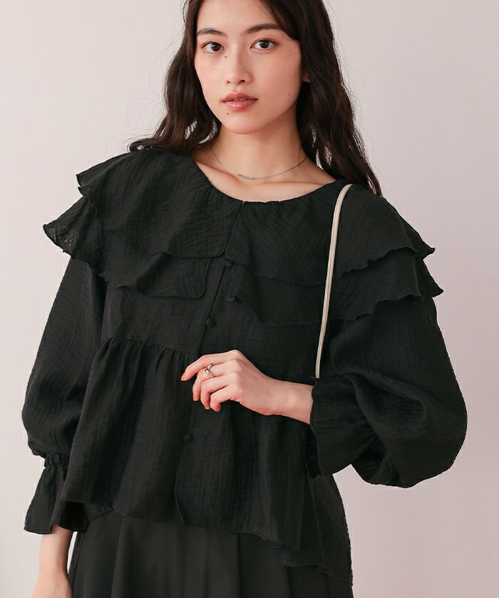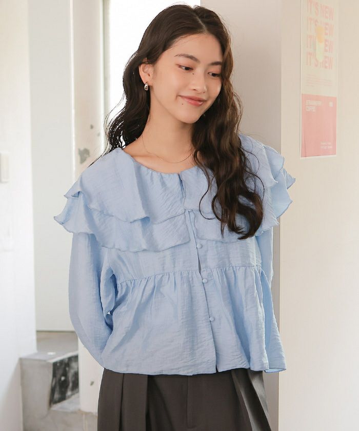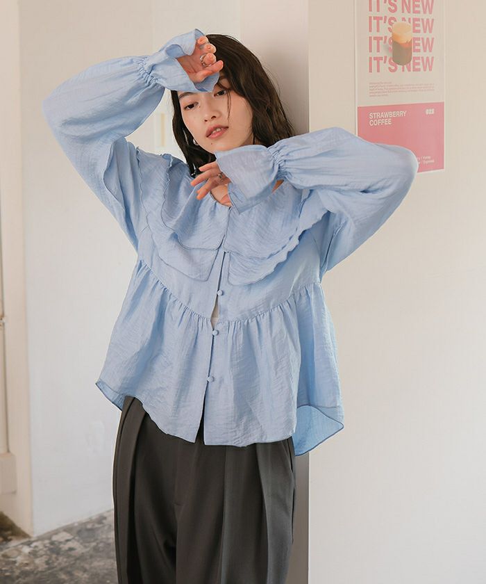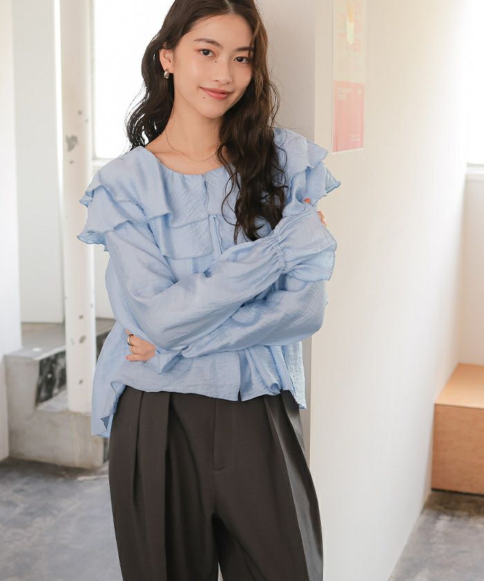 ・ひらっとしたラッフルフリルが可愛いブラウス