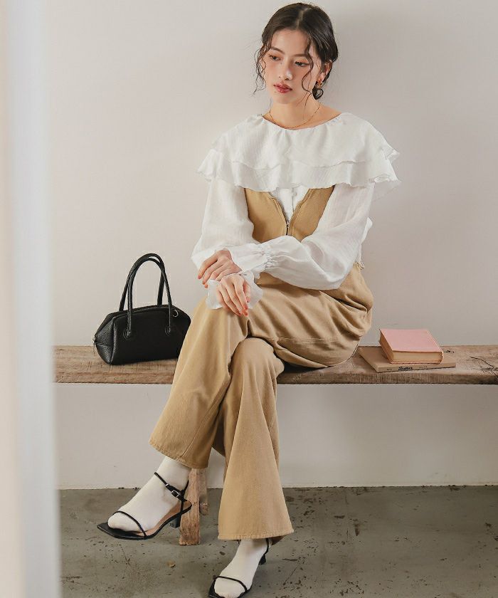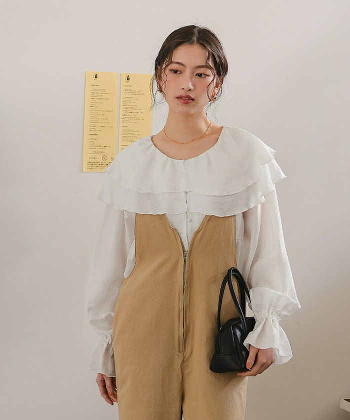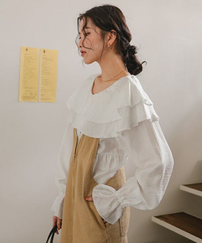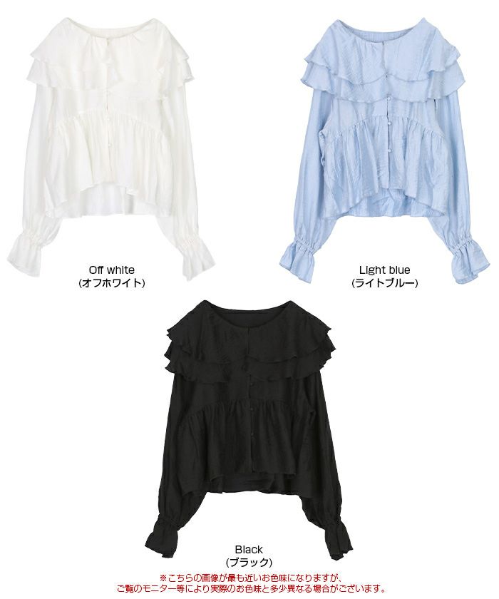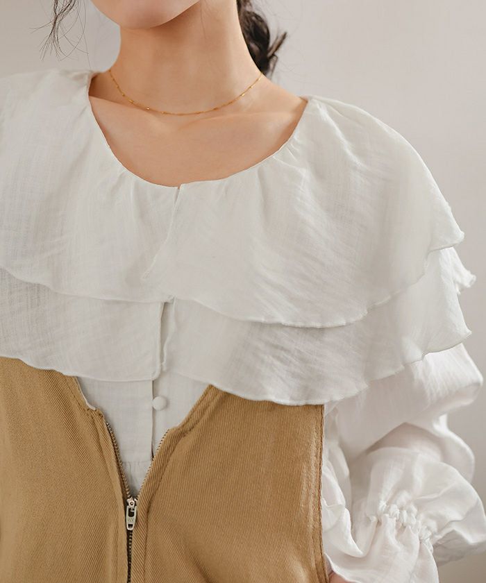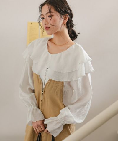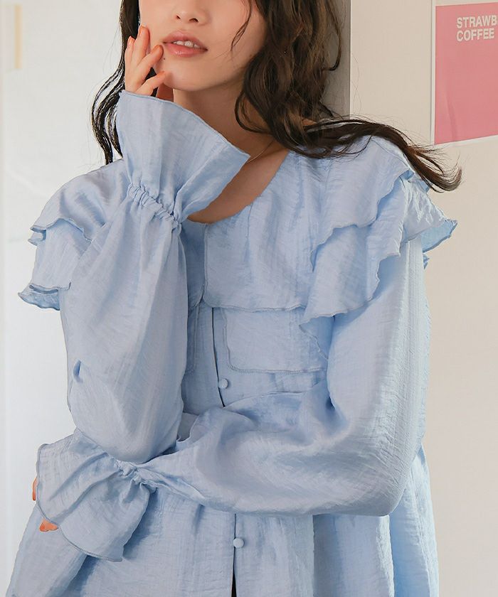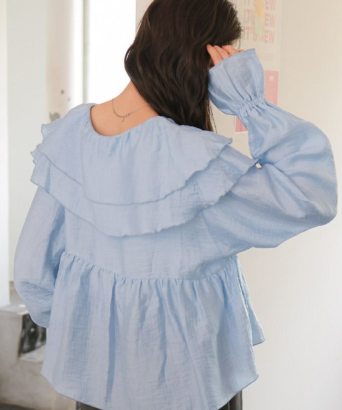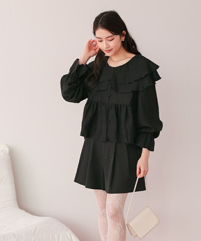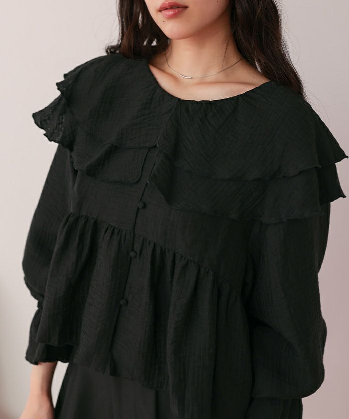 ・ひらっとしたラッフルフリルが可愛いブラウス