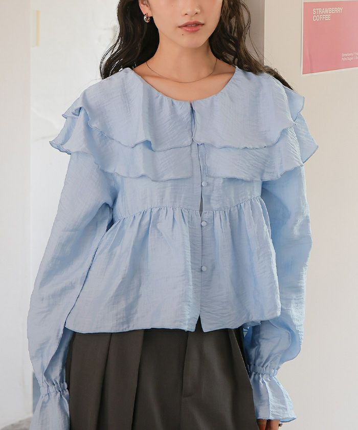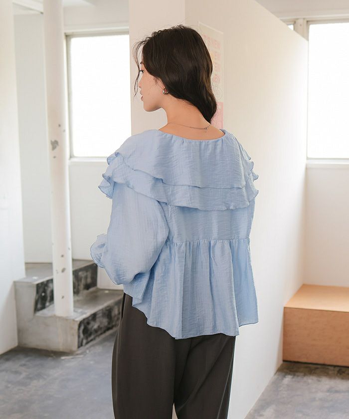 ペプラムギャザーラッフルフリルブラウス